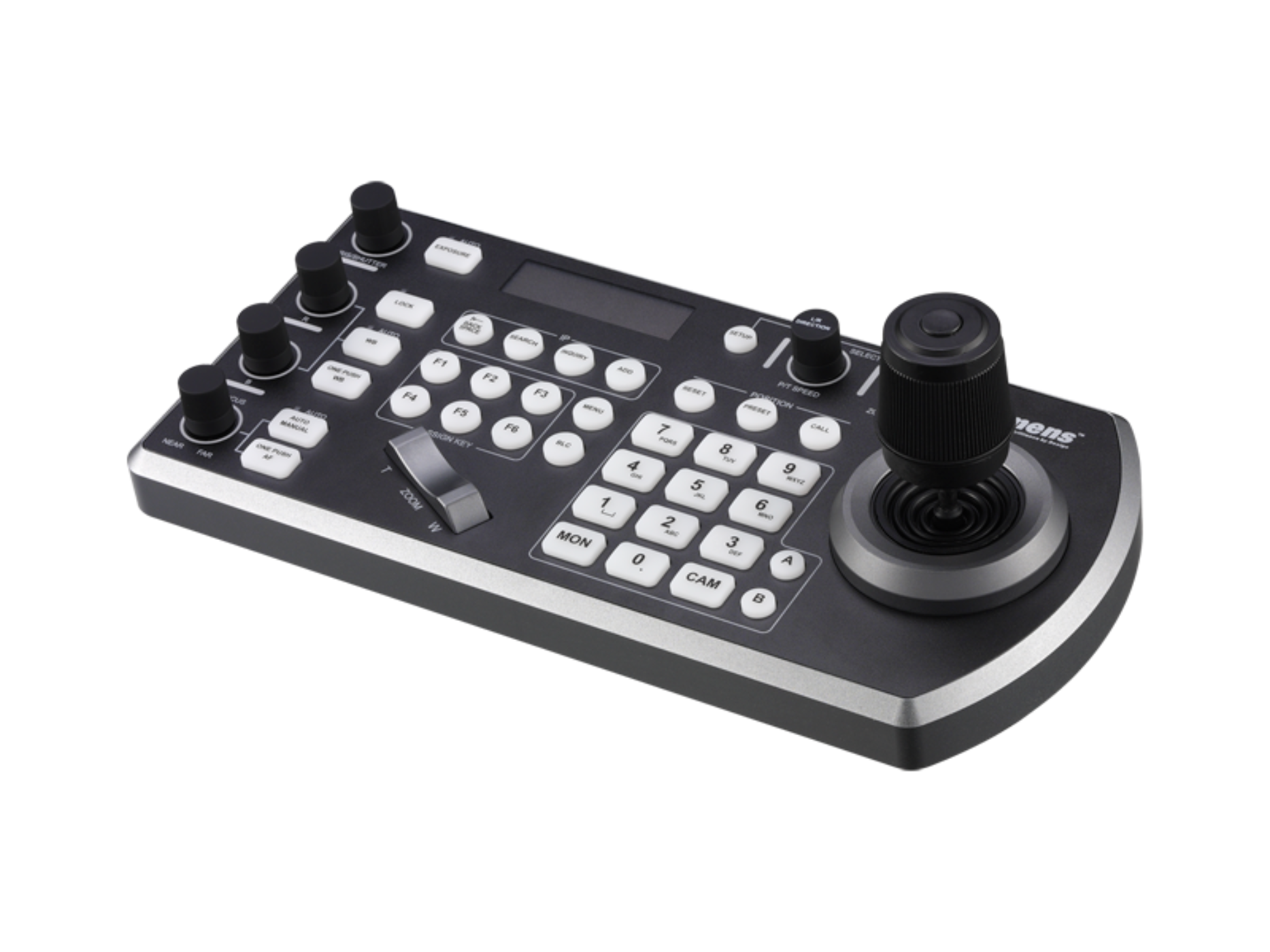 VS-KB30 is a compact controller for PTZ and block box cameras. Quick to set up and easy to use, it is surprisingly powerful, capable of supporting up-to 255 devices on the same network. The panel is customizable to meet your needs, enabling fast access to image settings, presets, zoom angle, and multi-axis camera motion.