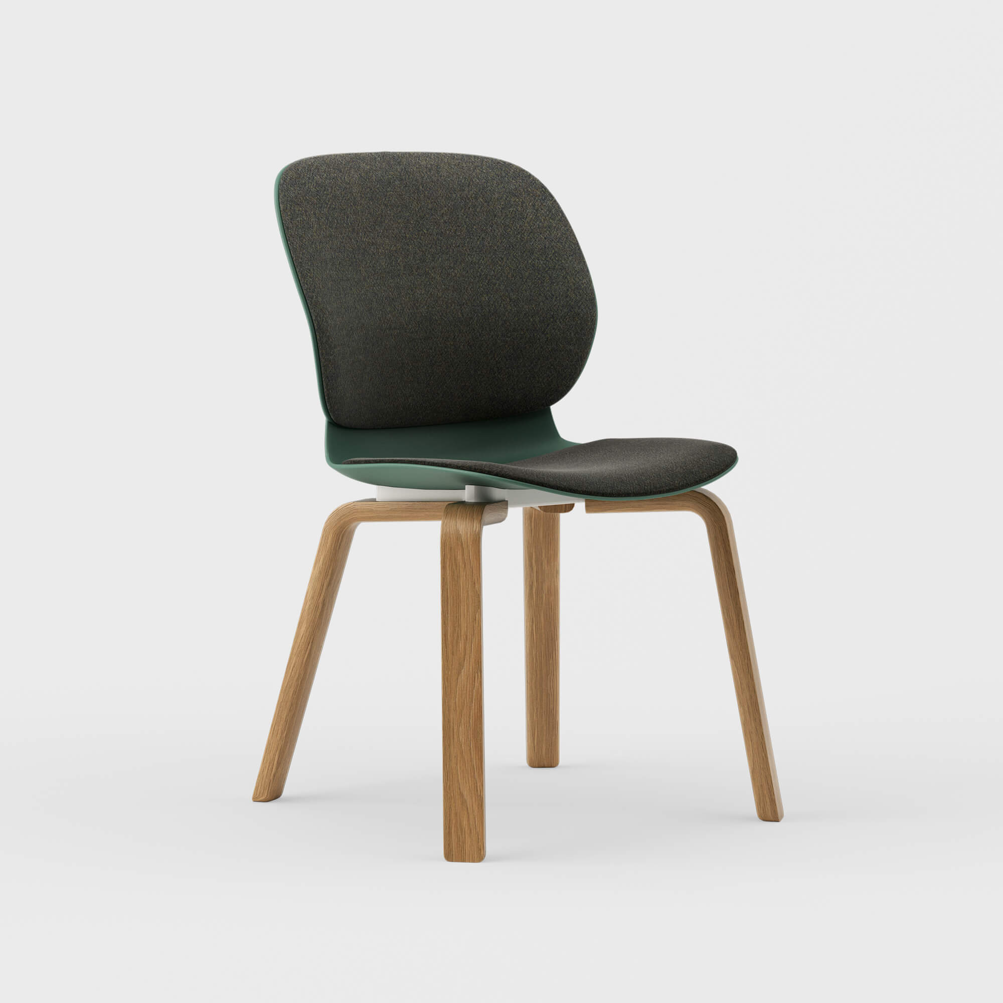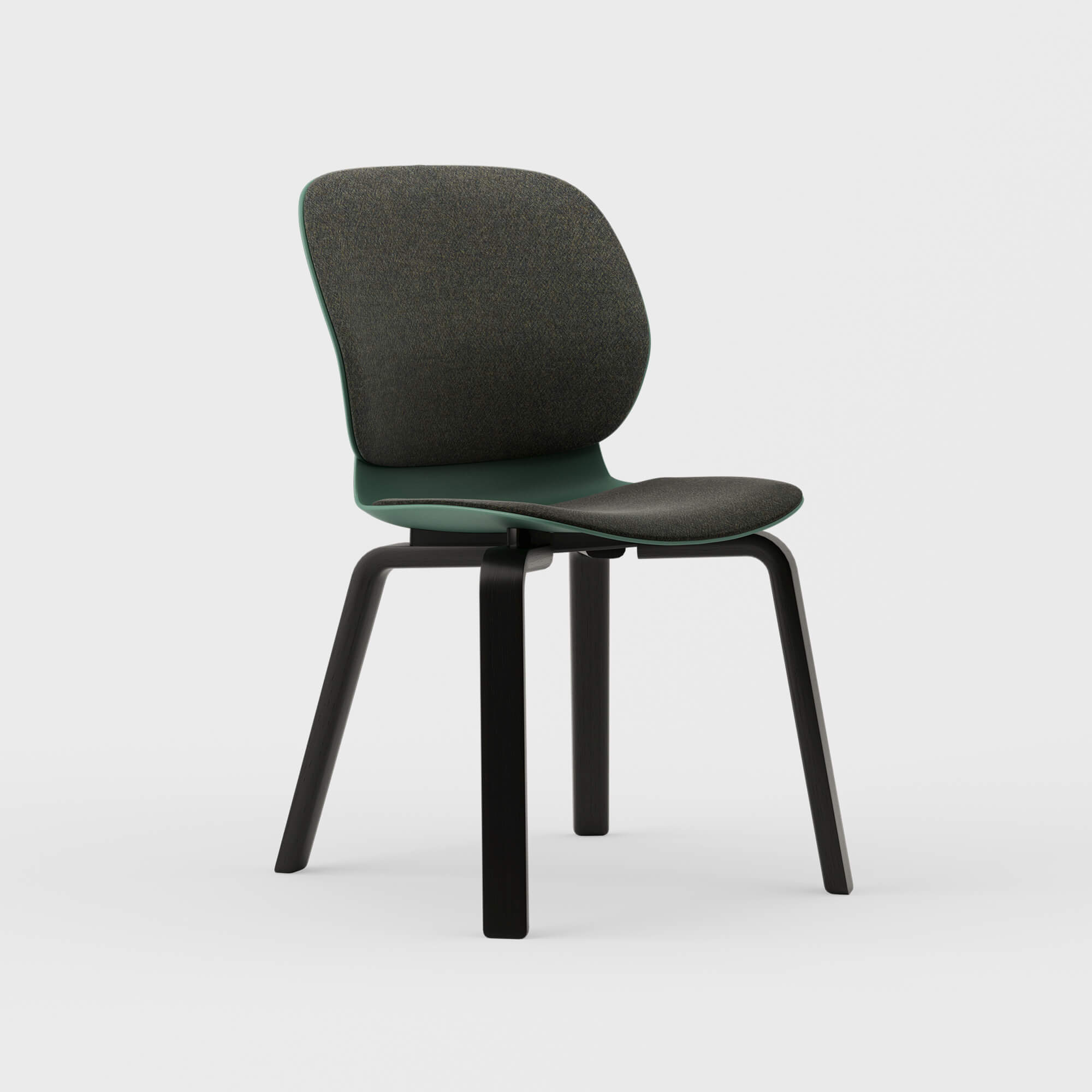 Q: What is the Maari Upholstered Chair with Wood Base made of?