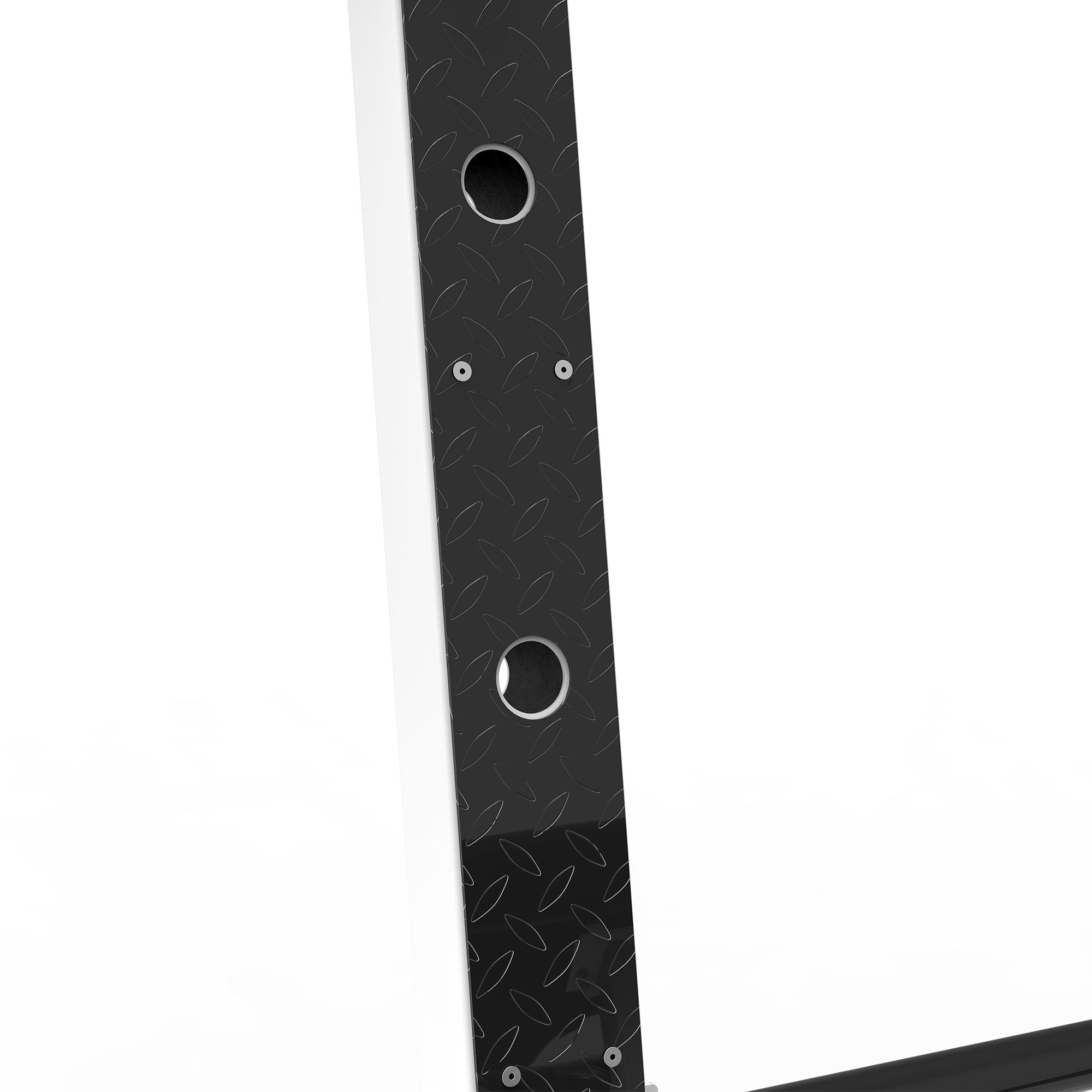 - Features weight rack storage post for weight plates, squat bar catch, barbell bar catch, and safety bar catch; Weights not included