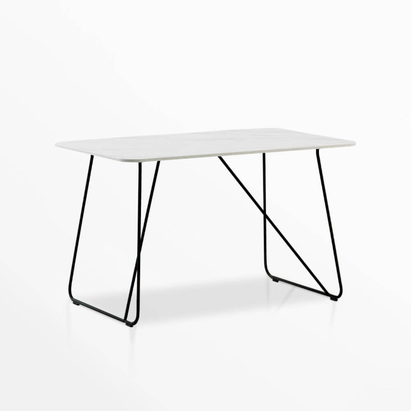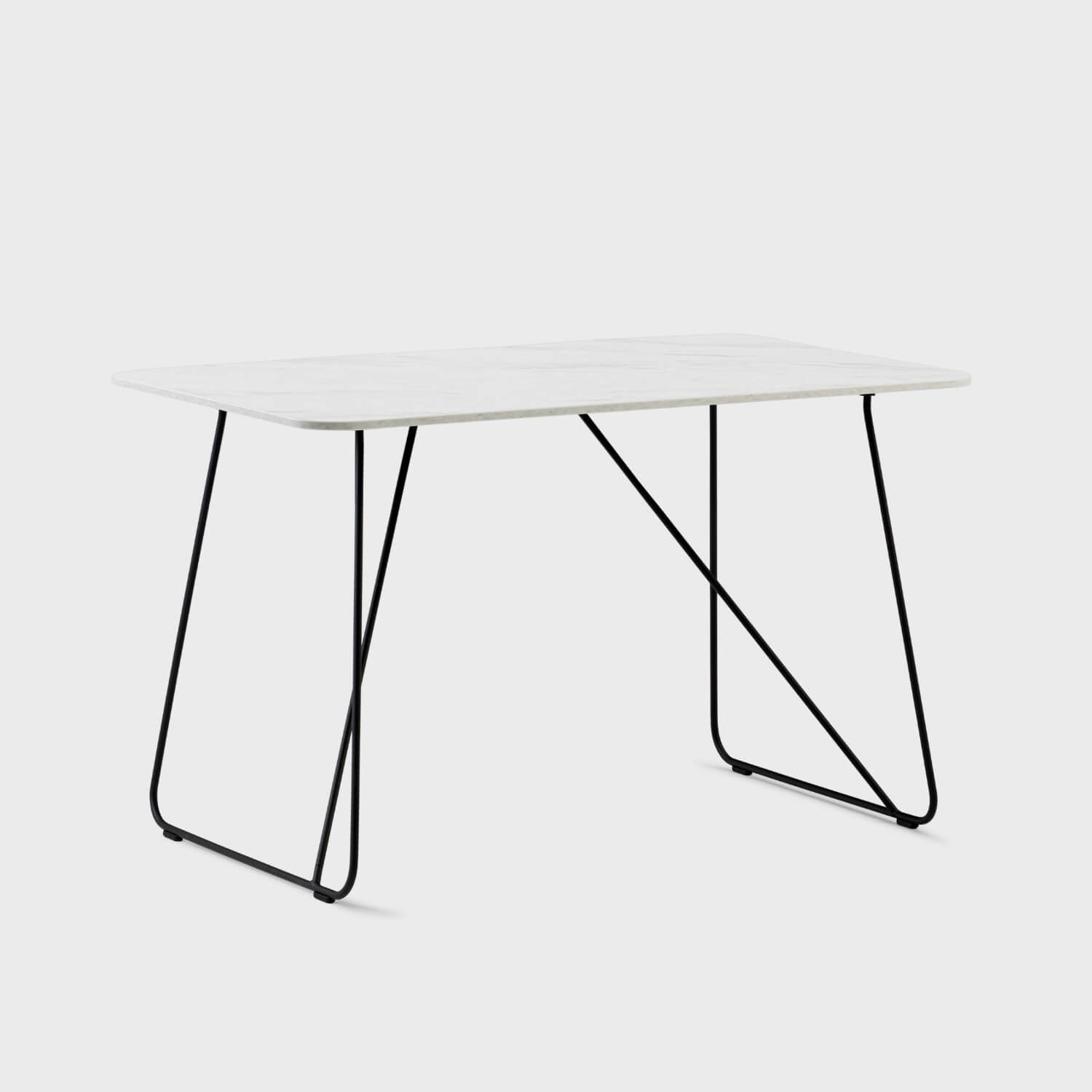 Sleek lines and a minimalist design create a modern look that fits in seamlessly with any style. Made with a sturdy wire frame, this desk is finished with a practical laminate top that resists scratches, stains, and heat. The spacious work surface offers plenty of room for your laptop, paperwork, and other daily essentials. The wire frame design gives you ample legroom for a comfortable sit.