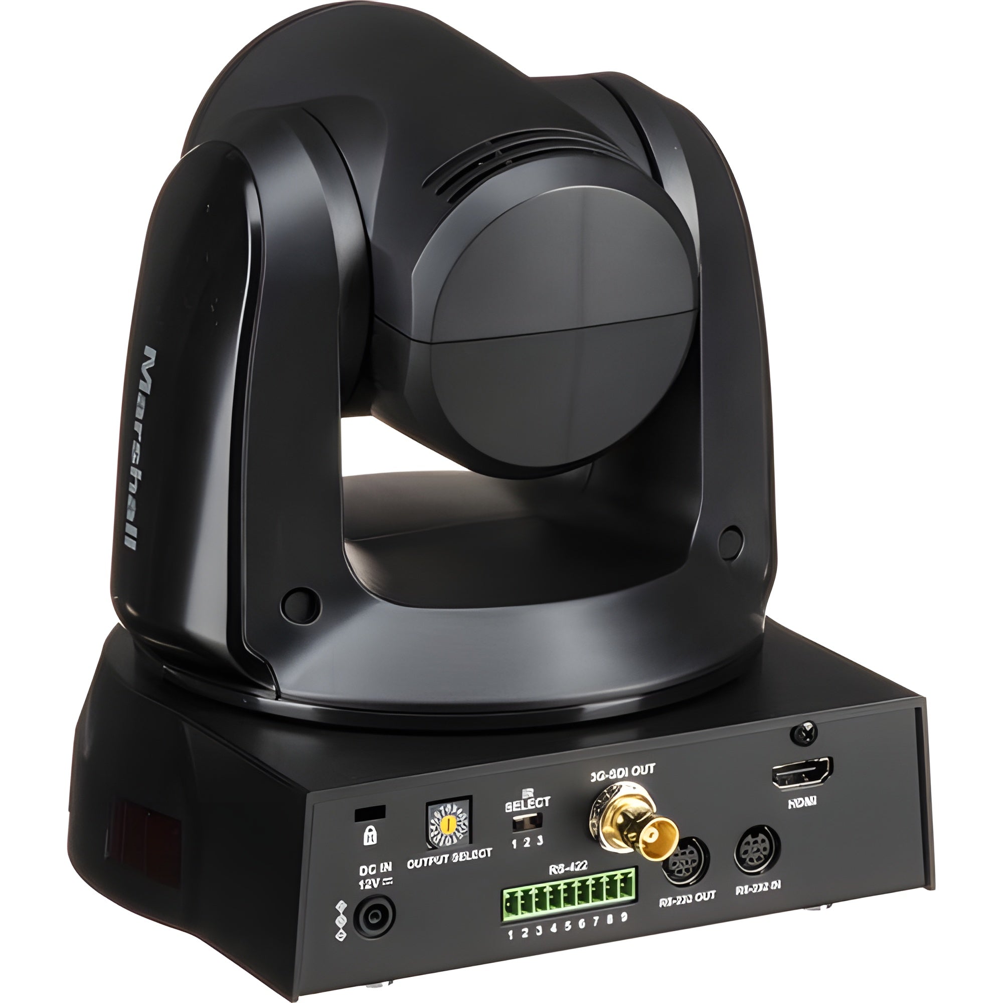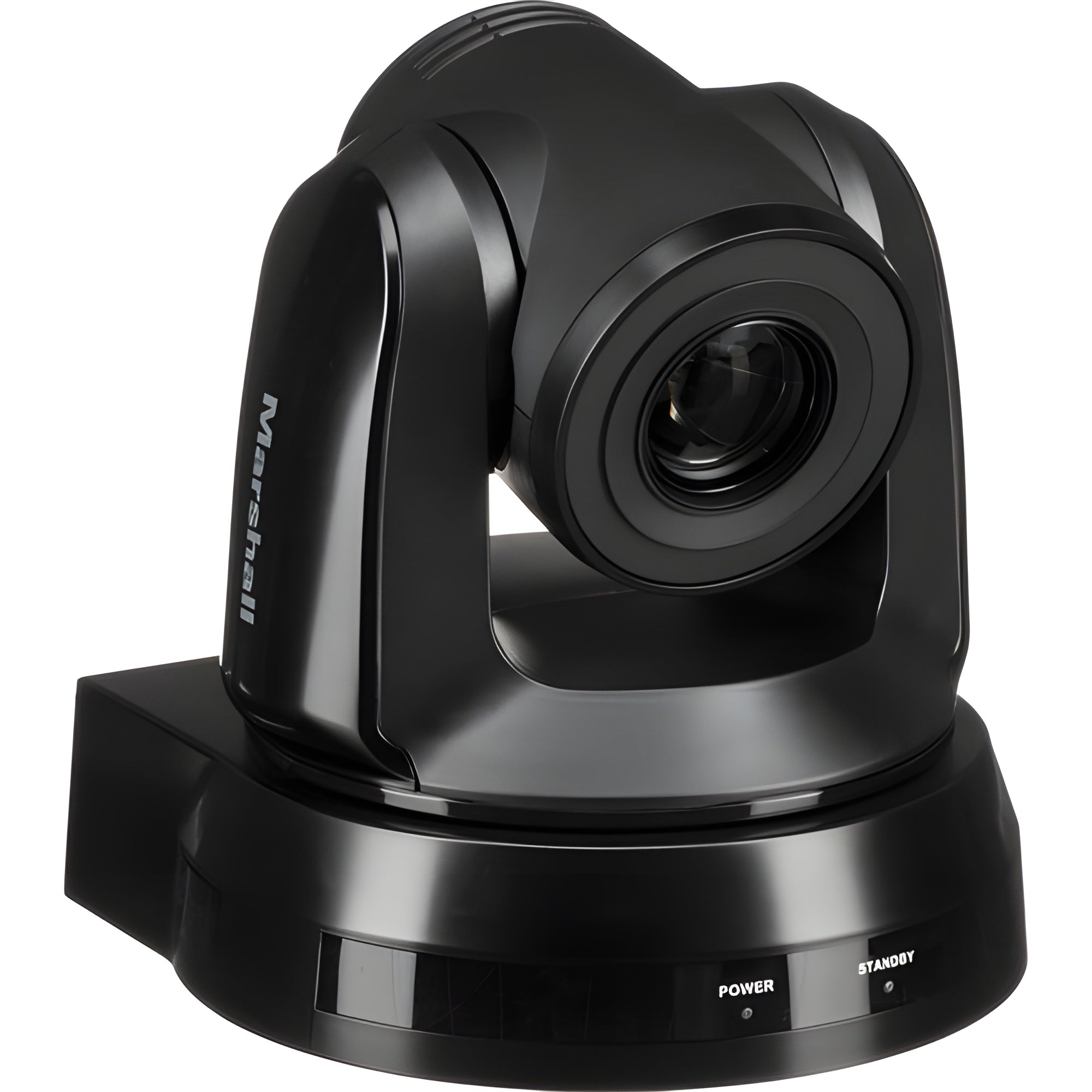 The black CV620-BK3 Broadcast Pro AV High-Definition PTZ Camera from Marshall Electronics is designed for professional video conferencing applications such as corporate, healthcare, government, education, and houses of worship venues. It captures up to 1080p60 resolution with 20x optical zoom, 12x digital zoom, and features 3G/HD-SDI and HDMI outputs and RS-232/RS-422 serial control.