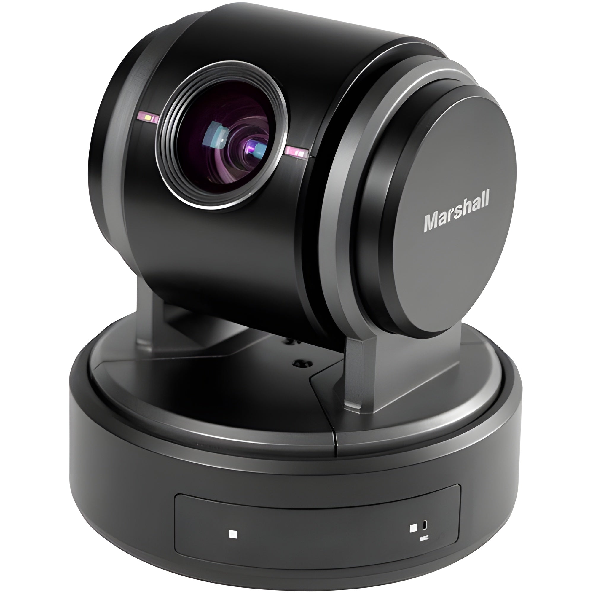 The black Marshall Electronics CV610-U3-V2 Compact PTZ USB/HDMI Camera is well suited for use as a remotely controlled video conference camera in various environments such as corporate and government meeting rooms, education, houses of worship, live events, courtrooms, healthcare, and broadcast media.