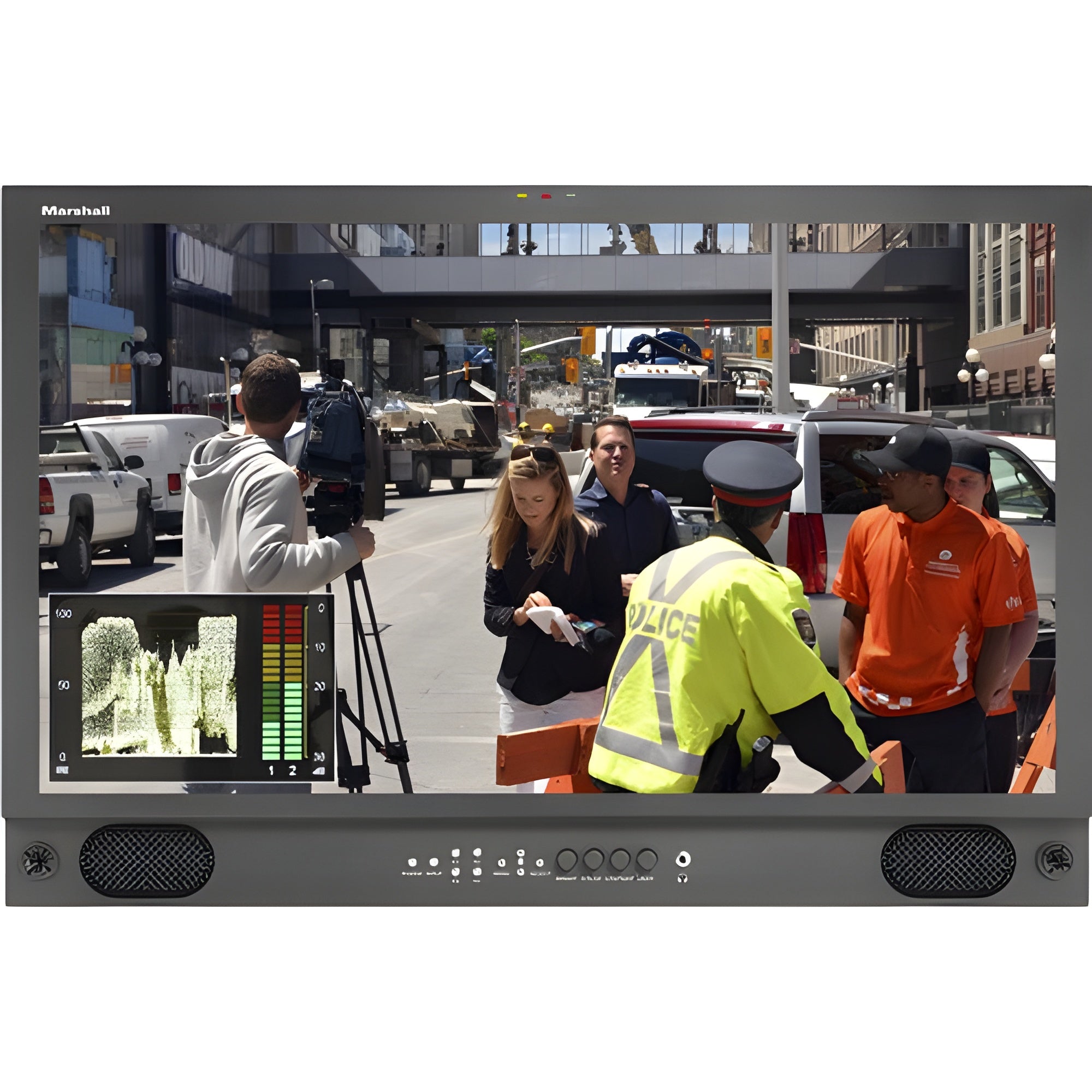 A: Yes, the monitor includes a built-in waveform monitor and audio display for accurate video and audio analysis.
