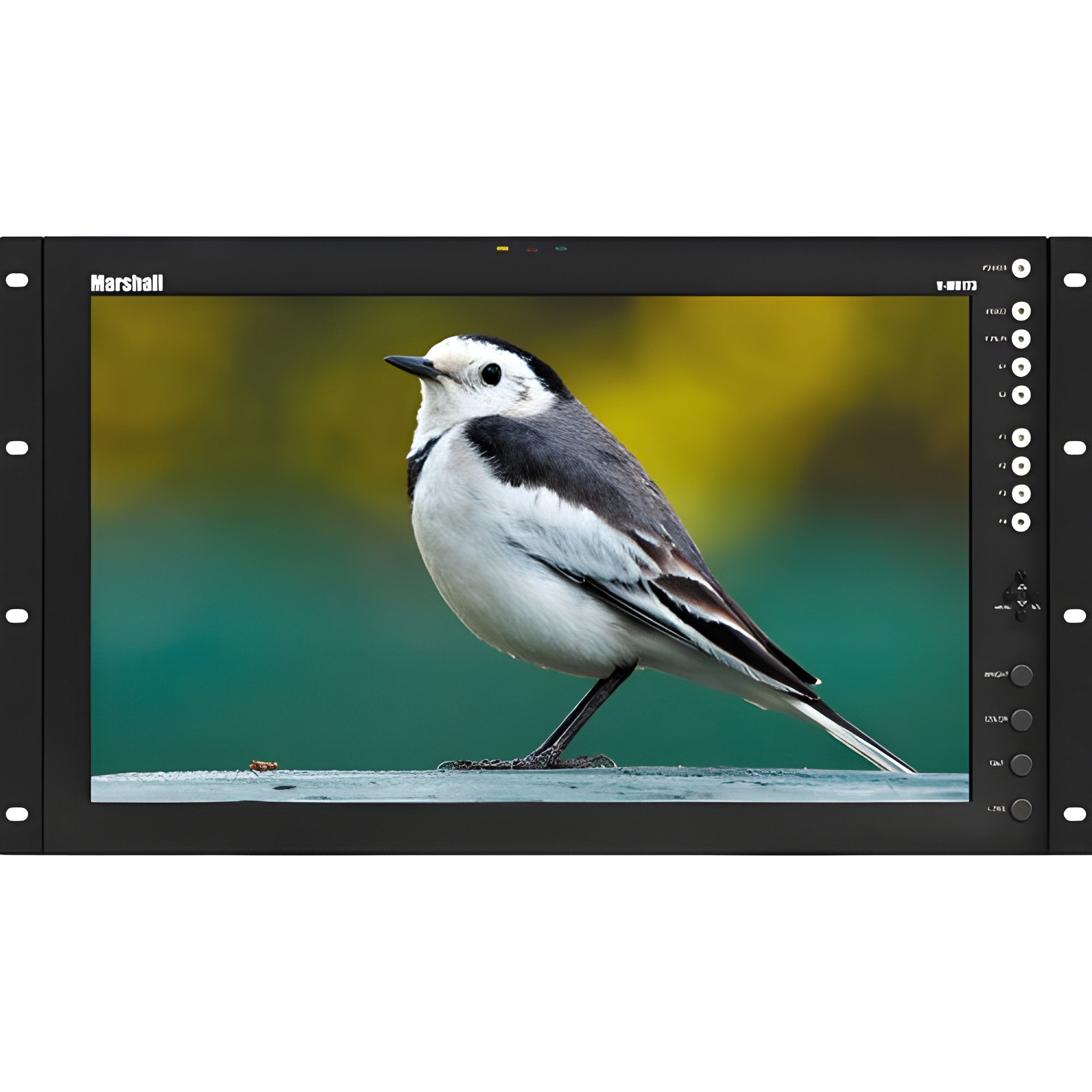 The V-MD173 can be mounted in any standard EIA 19" equipment rack. The attached rack ears can be angled to provide the user control over the viewing angle. A VESA standard 75mm hole pattern also allows custom mounting installations. Alternately, the V-MD173 can be used in a desktop configuration with optional stand (Marshall part number V-ST15).
