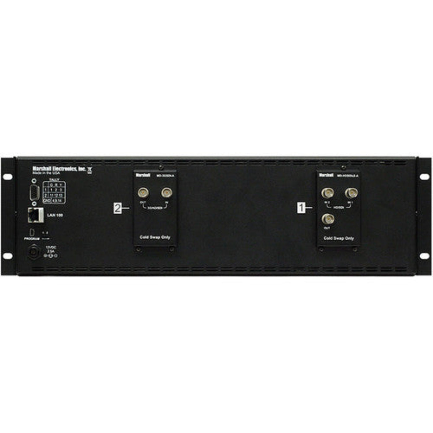 Marshall Electronics proudly presents the MD series of rack mount monitors that offer a flexible modular solution to system integration. These rack-mountable monitors can be configured with a variety of video inputs that can be "swapped" or interchanged in the field based on your evolving needs and requirements. This eliminates the need to upgrade or replace equipment when a different input or application is required. This "future proof" solution provides flexibility and reassurance when necessary, especially in multi-monitor rack mount units.