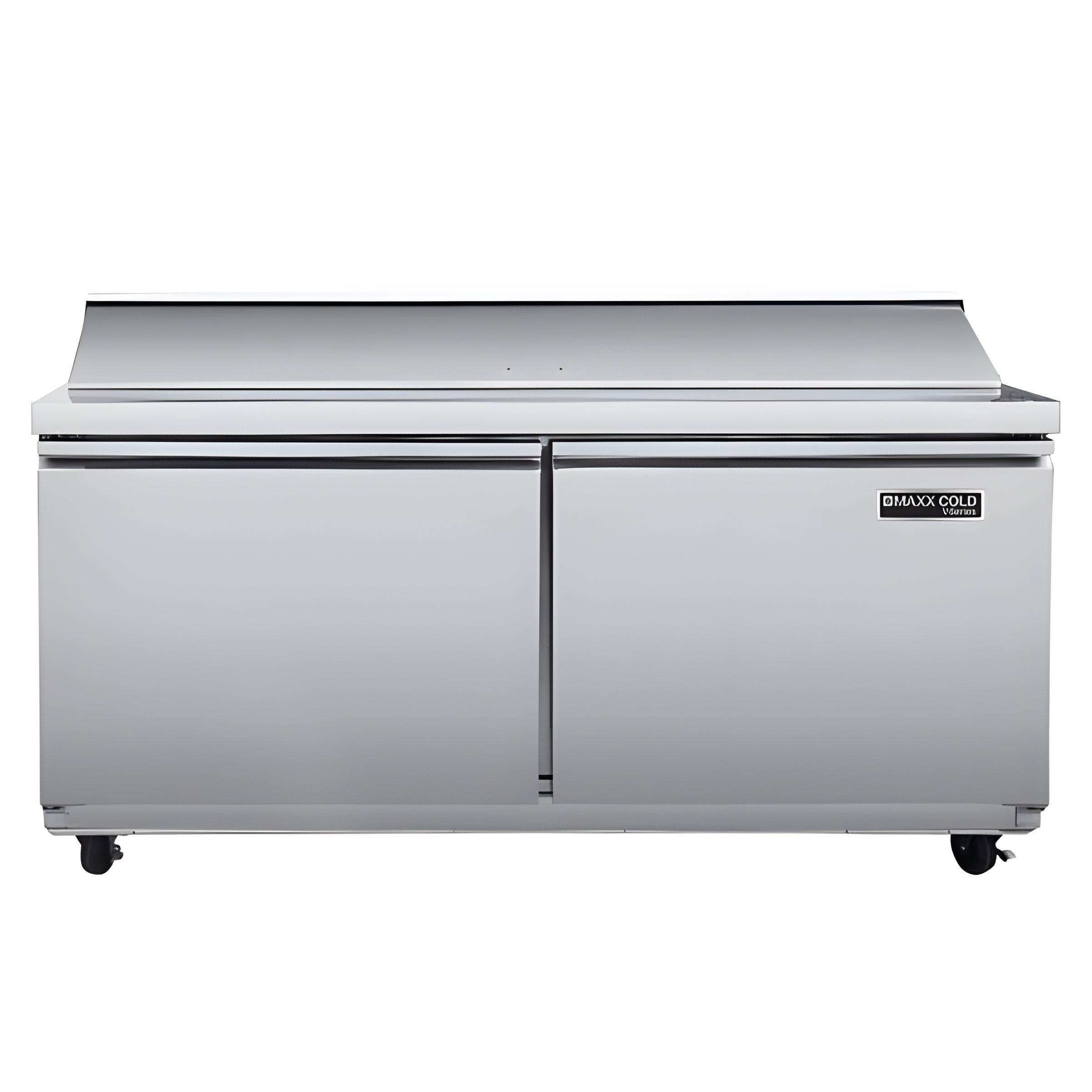 Maxx Cold V-Series 2 Door Refrigerated Sandwich and Salad Prep Station, in Stainless Steel - MVR60SHC