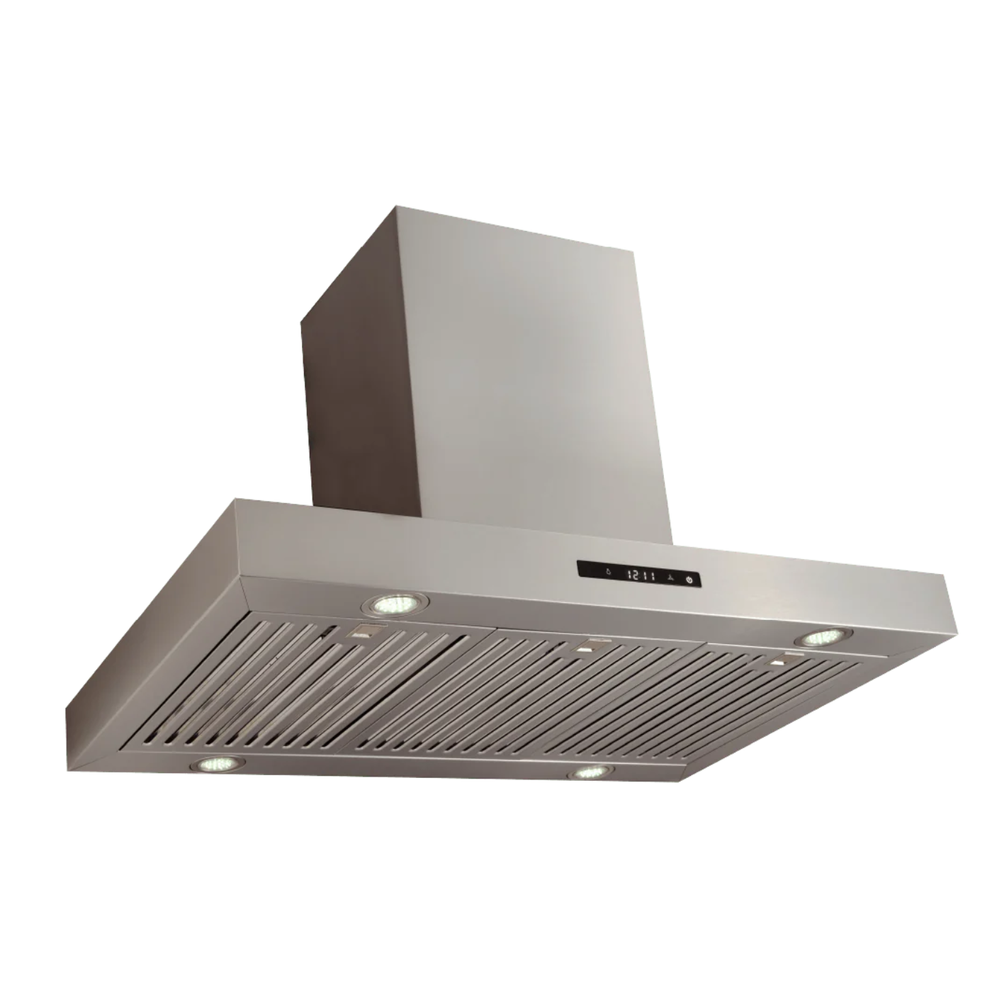 A: This island range hood measures 36 inches, making it a great fit for standard-sized kitchen islands.