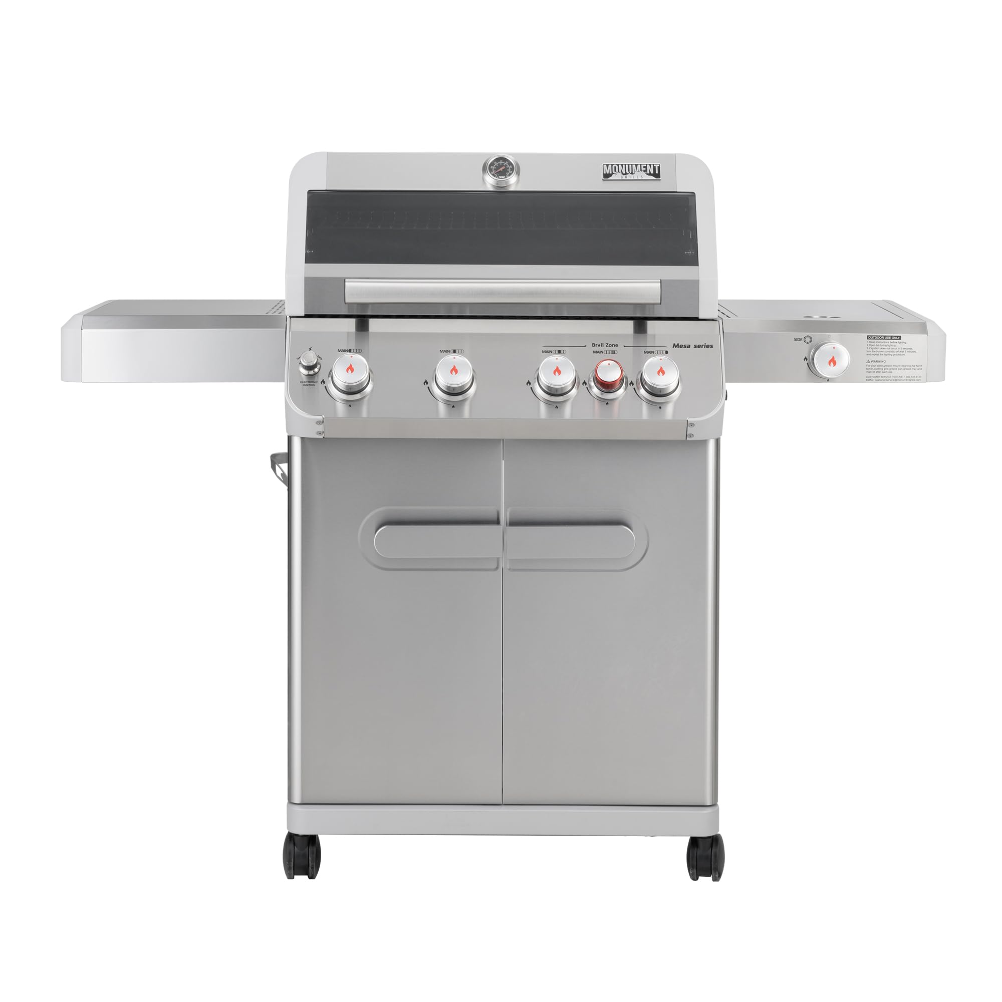 High-Performance Cooking: With 62,000 BTU total output and 4 stainless steel main burners, this grill delivers fast, even heat—perfect for searing steaks or slow-cooking ribs.