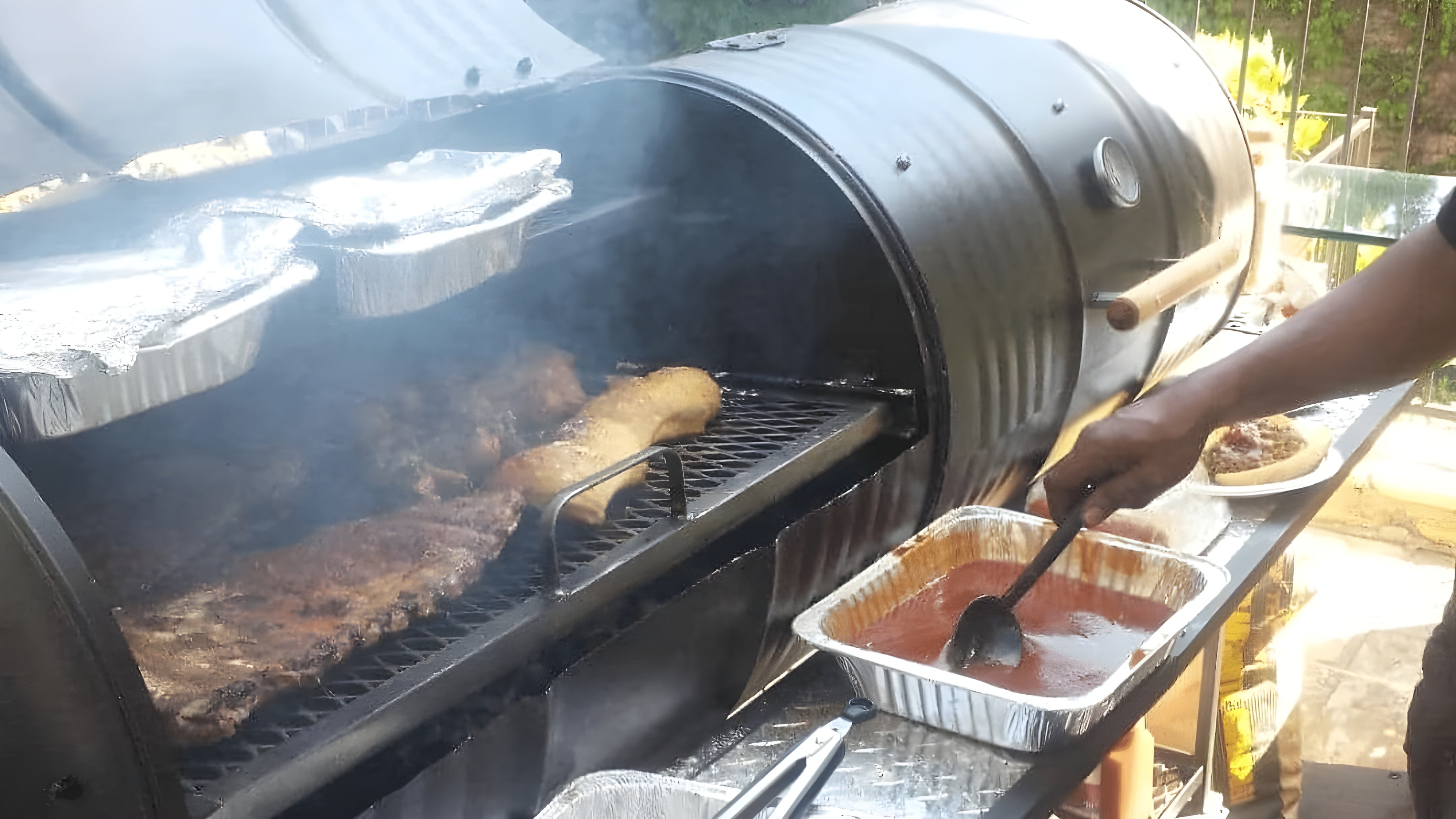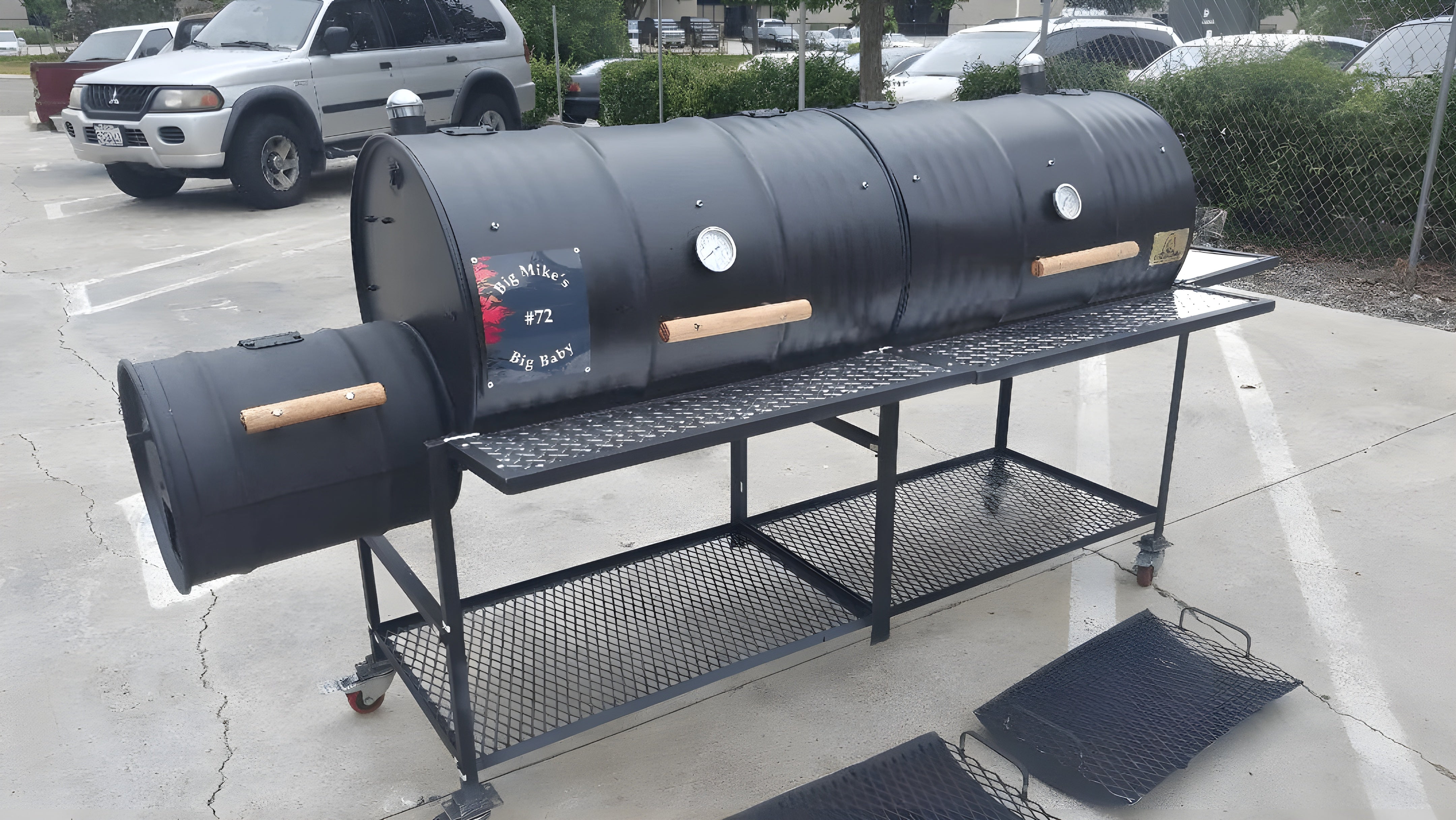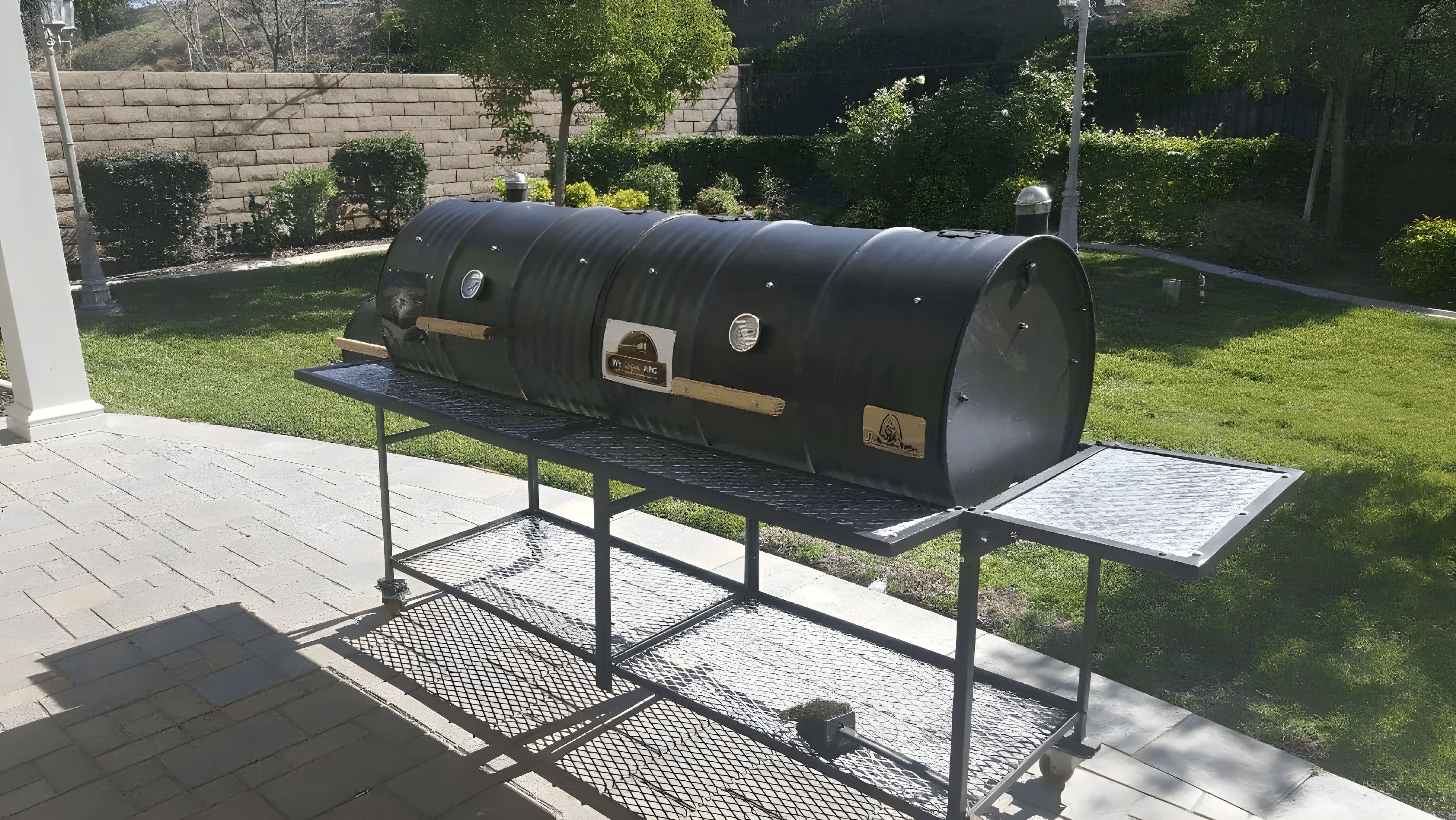 - A smoker box on one of the 55 gallon barrels is used for smoking on one side while you're grilling on the opposite side