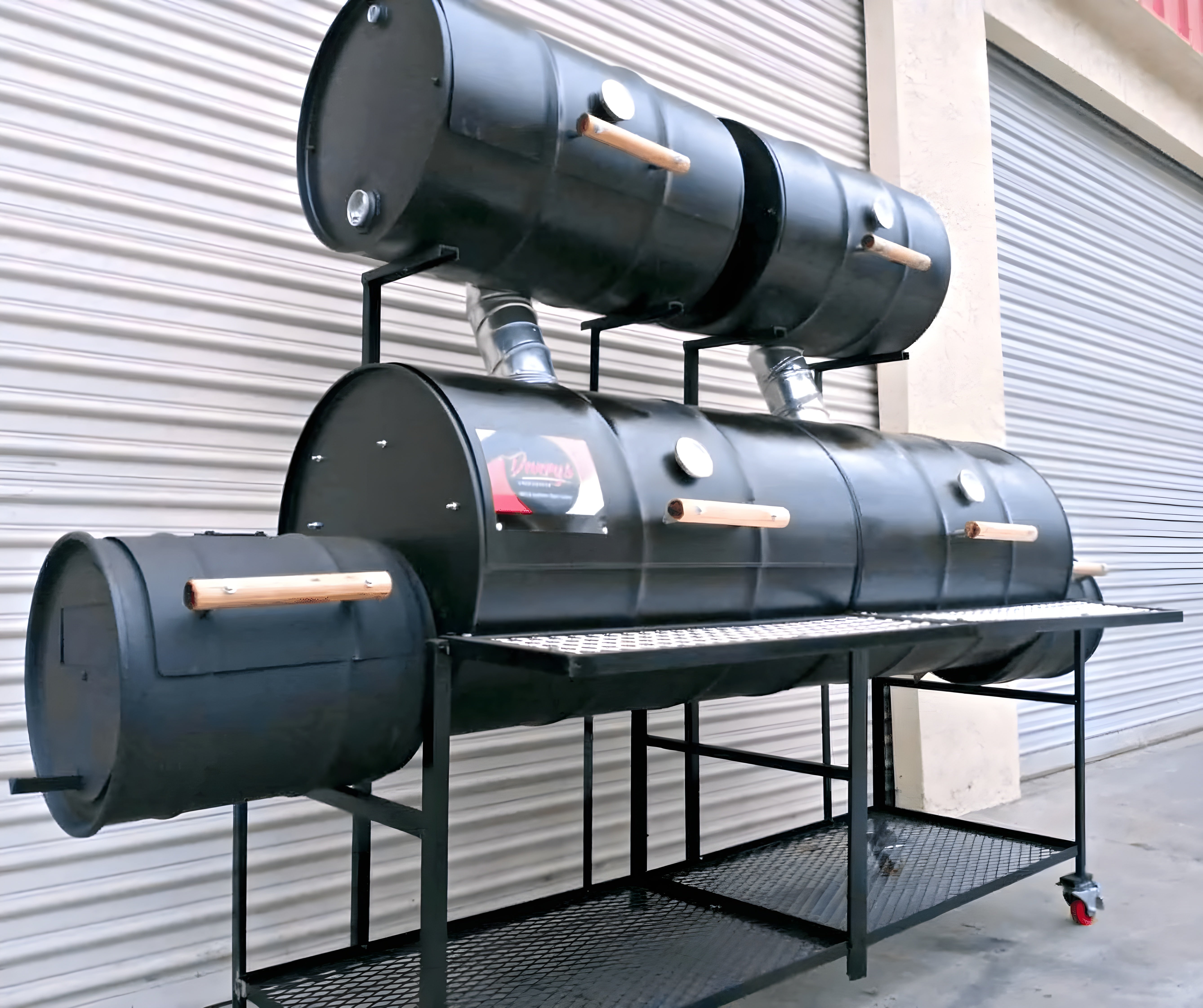 - A smoker box installed underneath the 55 gallon barrels is used for smoking from under the bottom of the grill