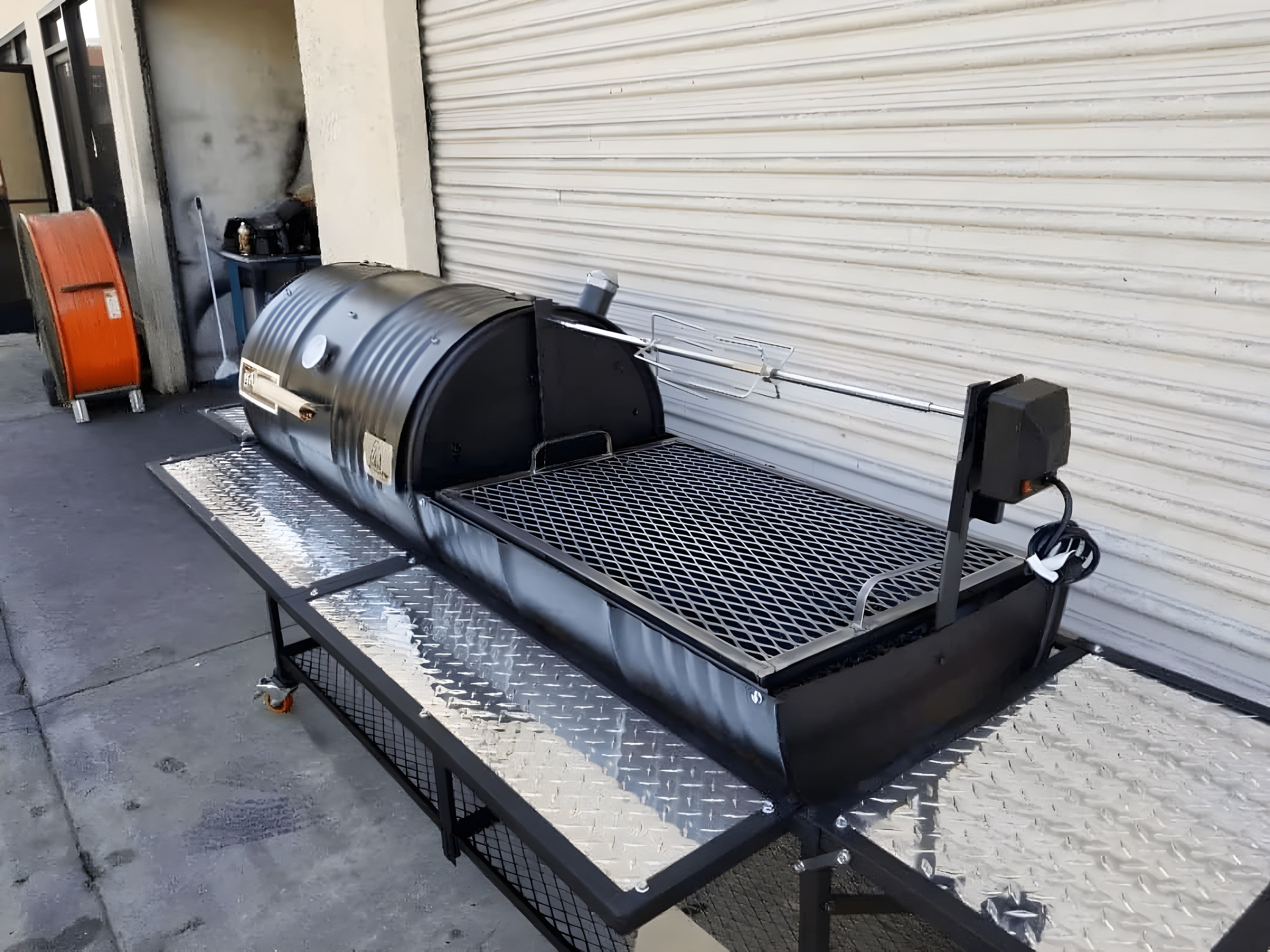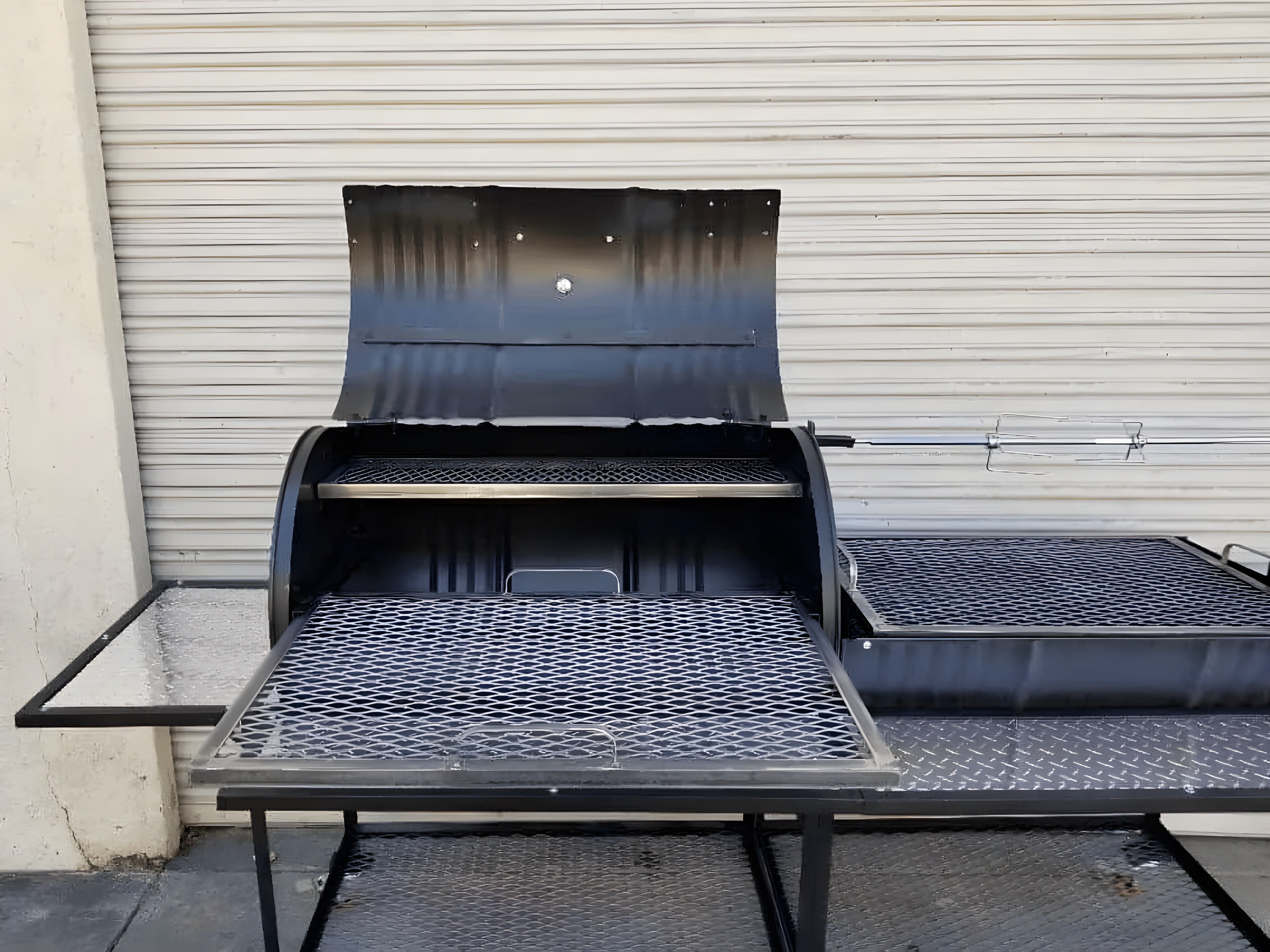 This unit has several options you can smoke, rotisserie, or straight grill your favorite meals on our Moss Ranch Style Custom BBQ Grill.