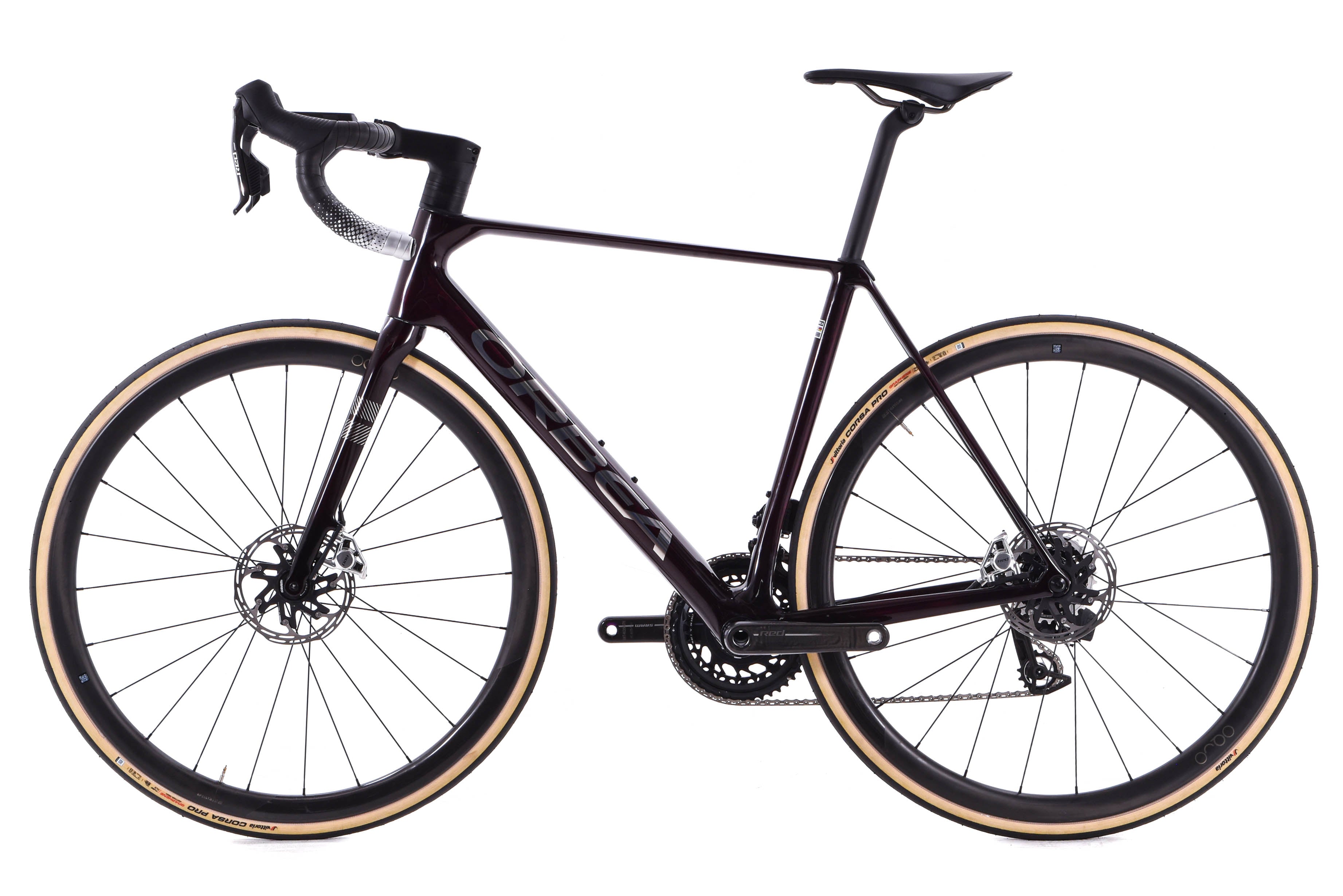 For sale is a NEW 2024 Orbea Orca M11eLTD Power road bike. The size 53cm frame is finished in a fine translucent wine red paint with titanium silver logos and was built up at Around the Cycle with the brand new SRAM Red E1 drivetrain.