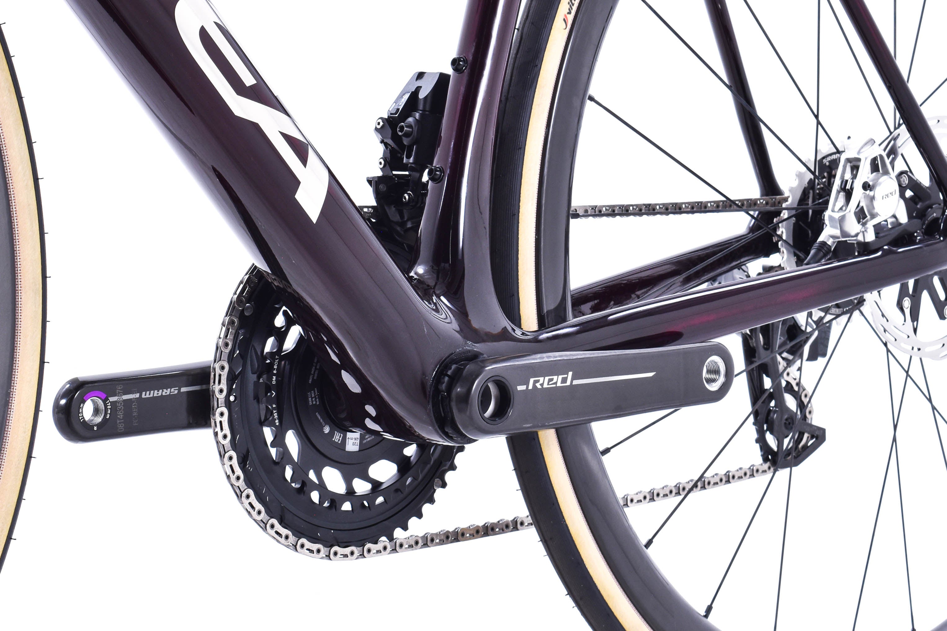 SRAM Red AXS Drivetrain: The SRAM Red eTap AXS system provides smooth, precise shifting, enhancing your riding experience on the road.