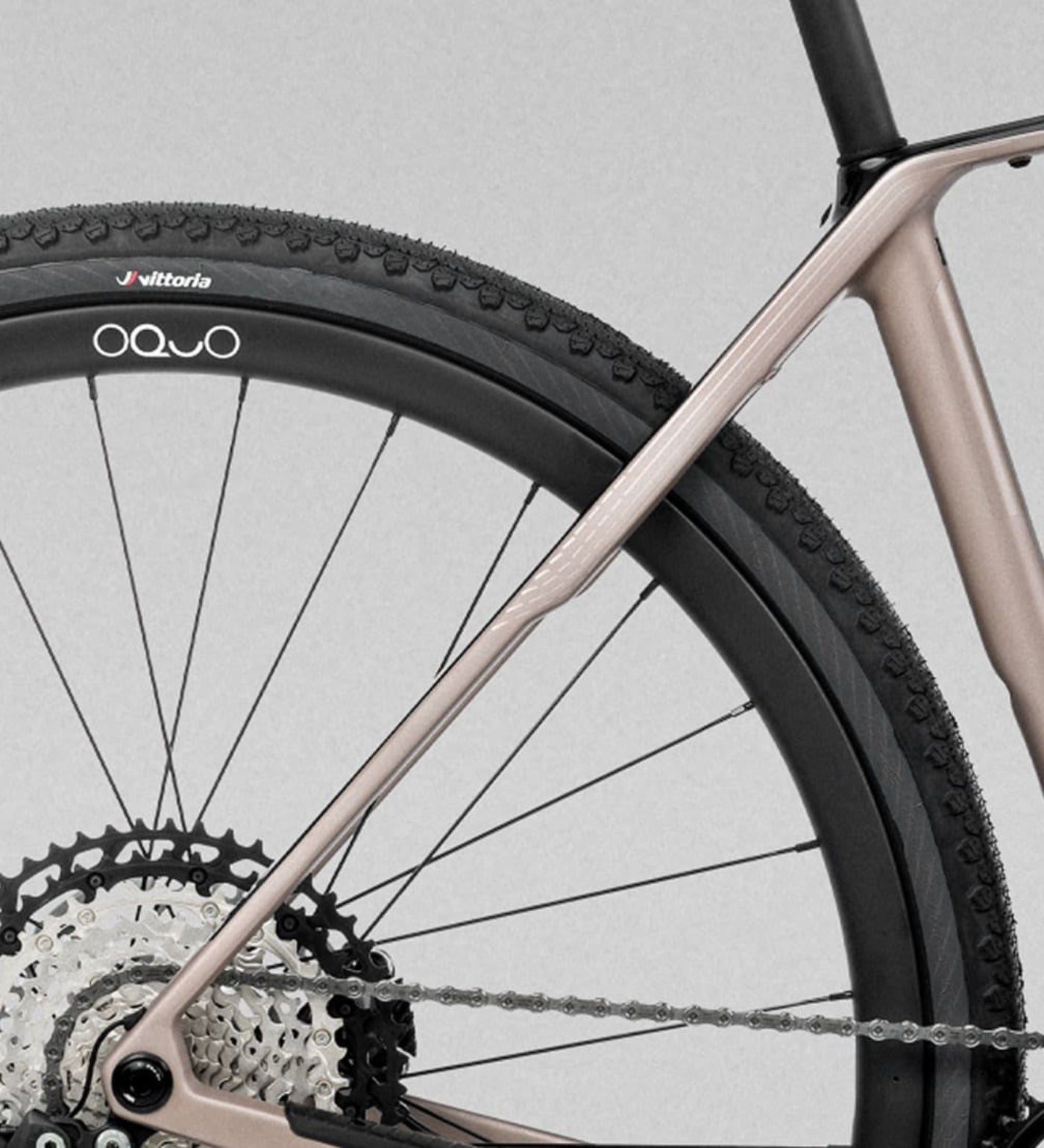 Oquo Road Control Carbon Wheels: Tubeless-ready wheels paired with high-performance tires for enhanced stability and comfort on gravel.