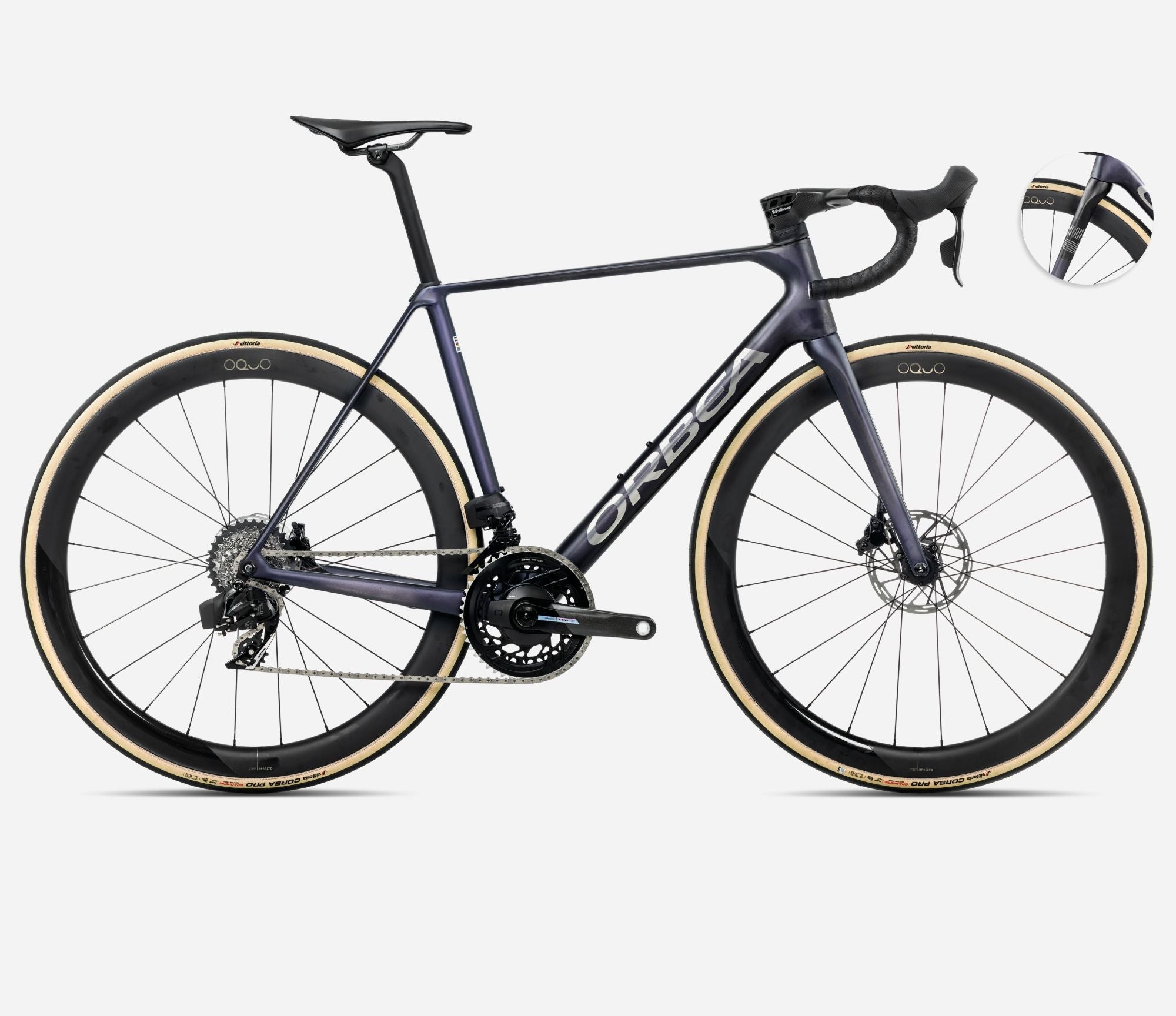 A: The 2025 Orbea Orca M21eLTD PWR is a premium carbon road bike built for serious performance. It features an OMX carbon frame, SRAM Force AXS 12-speed electronic shifting, and Oquo carbon wheels.