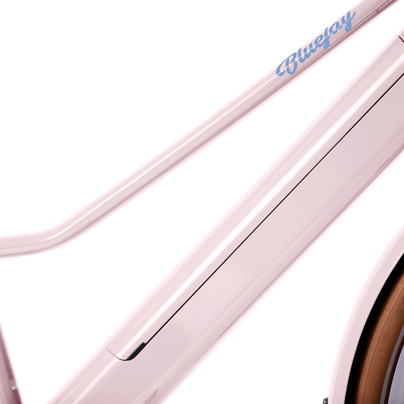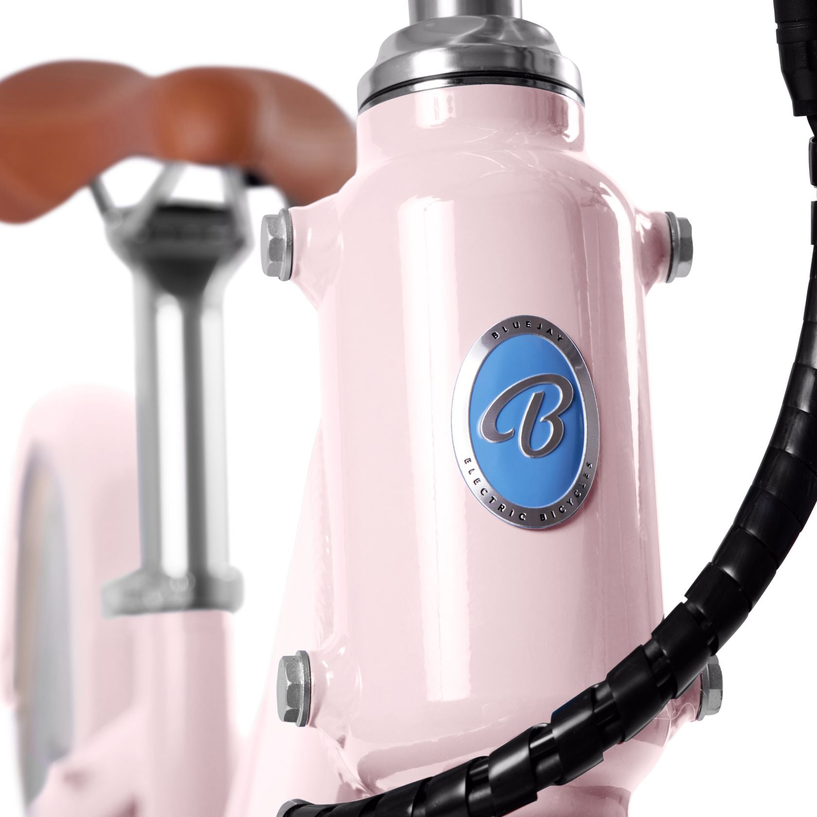 A: The Bluejay Premiere Lite is a stylish and efficient electric bike designed for urban commuting, featuring a beautiful Blush Pink finish and reliable performance for everyday riders.