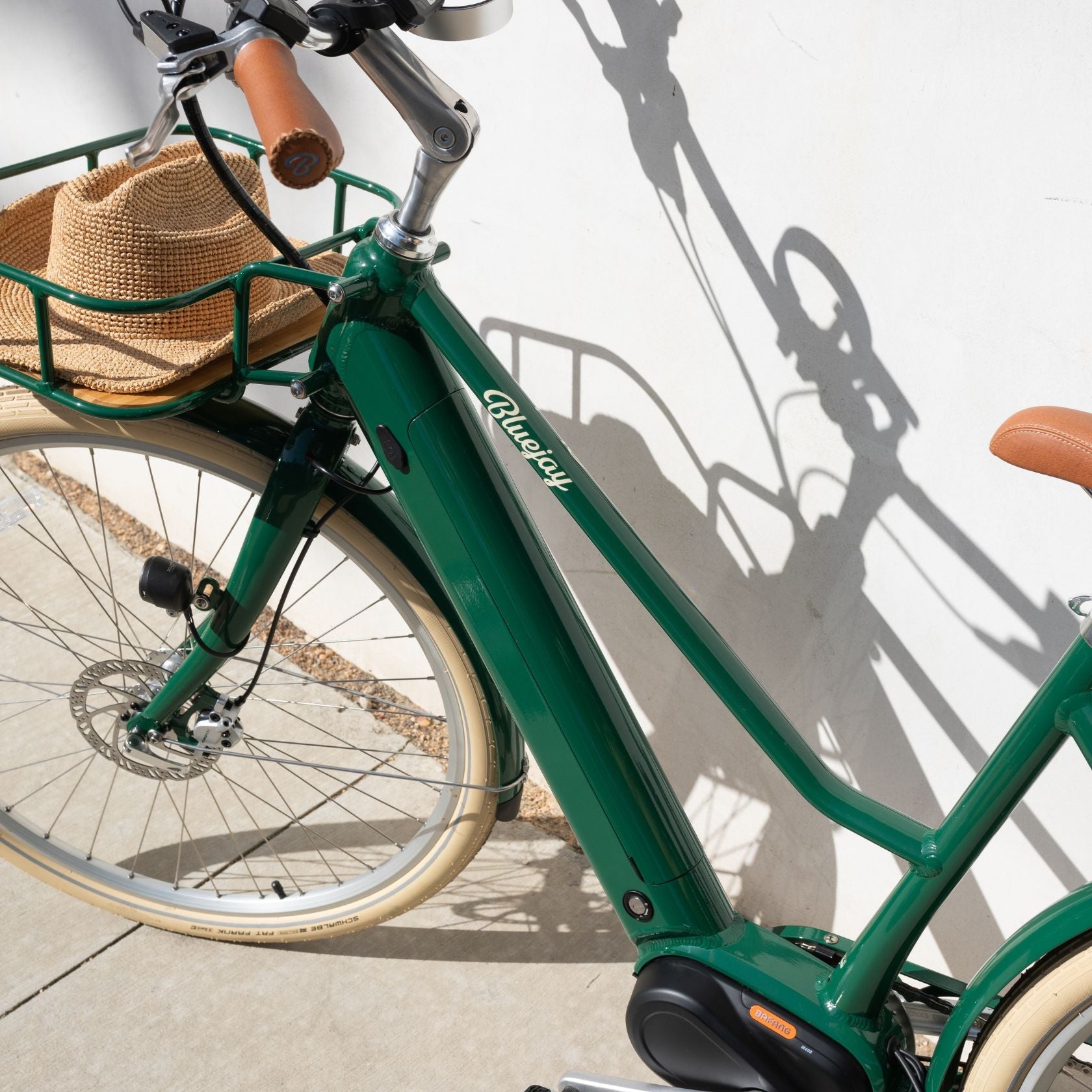 A: The Bluejay Premiere Lite is a premium electric bike with a sleek British Racing Green finish, designed for both style and performance, perfect for urban commuting and weekend rides.