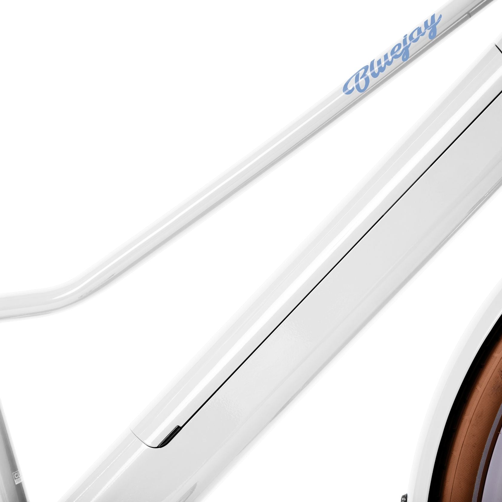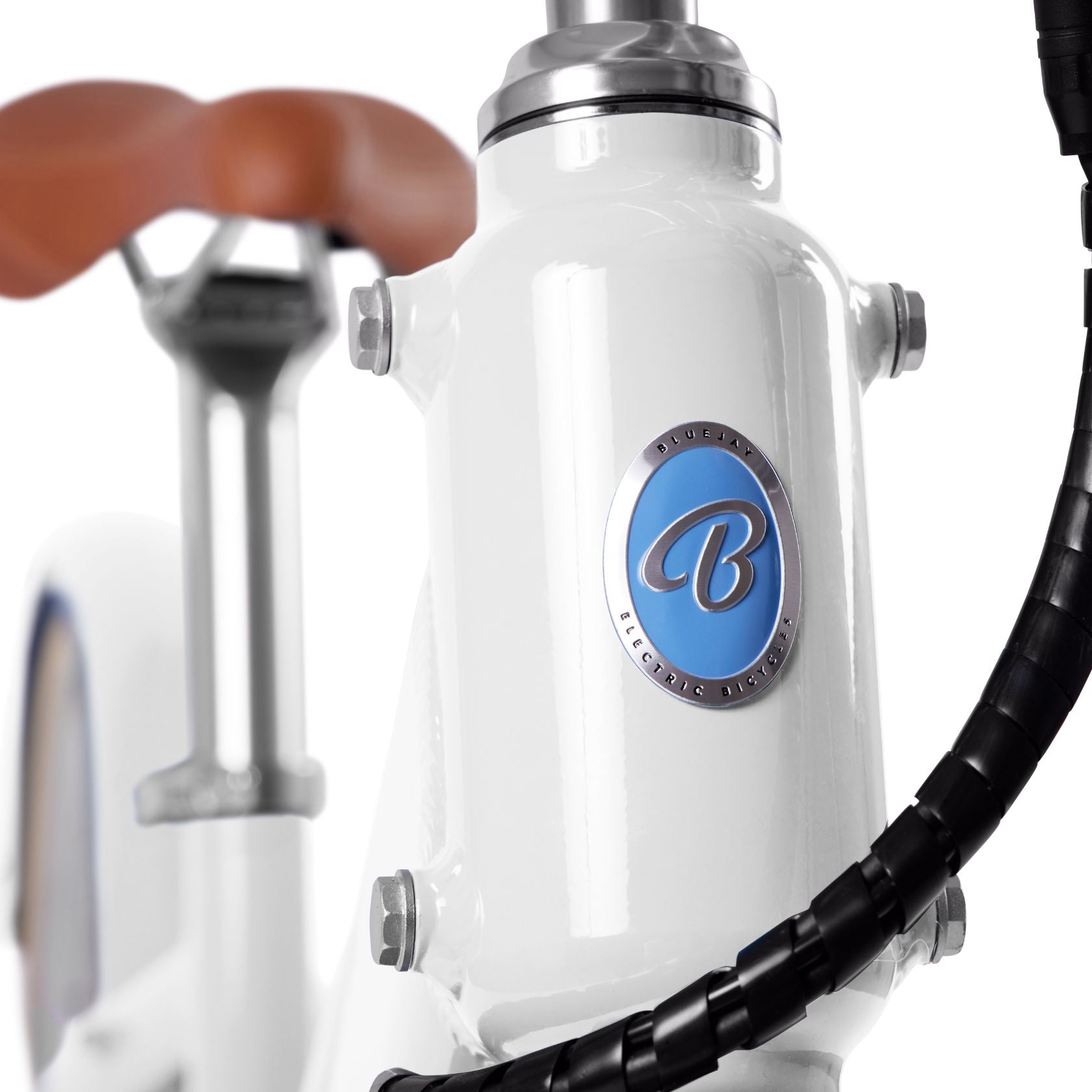 A: The Bluejay Premiere Lite is a sleek, modern electric bike designed for city commuters and casual riders, featuring a stylish Modern White finish and exceptional performance.