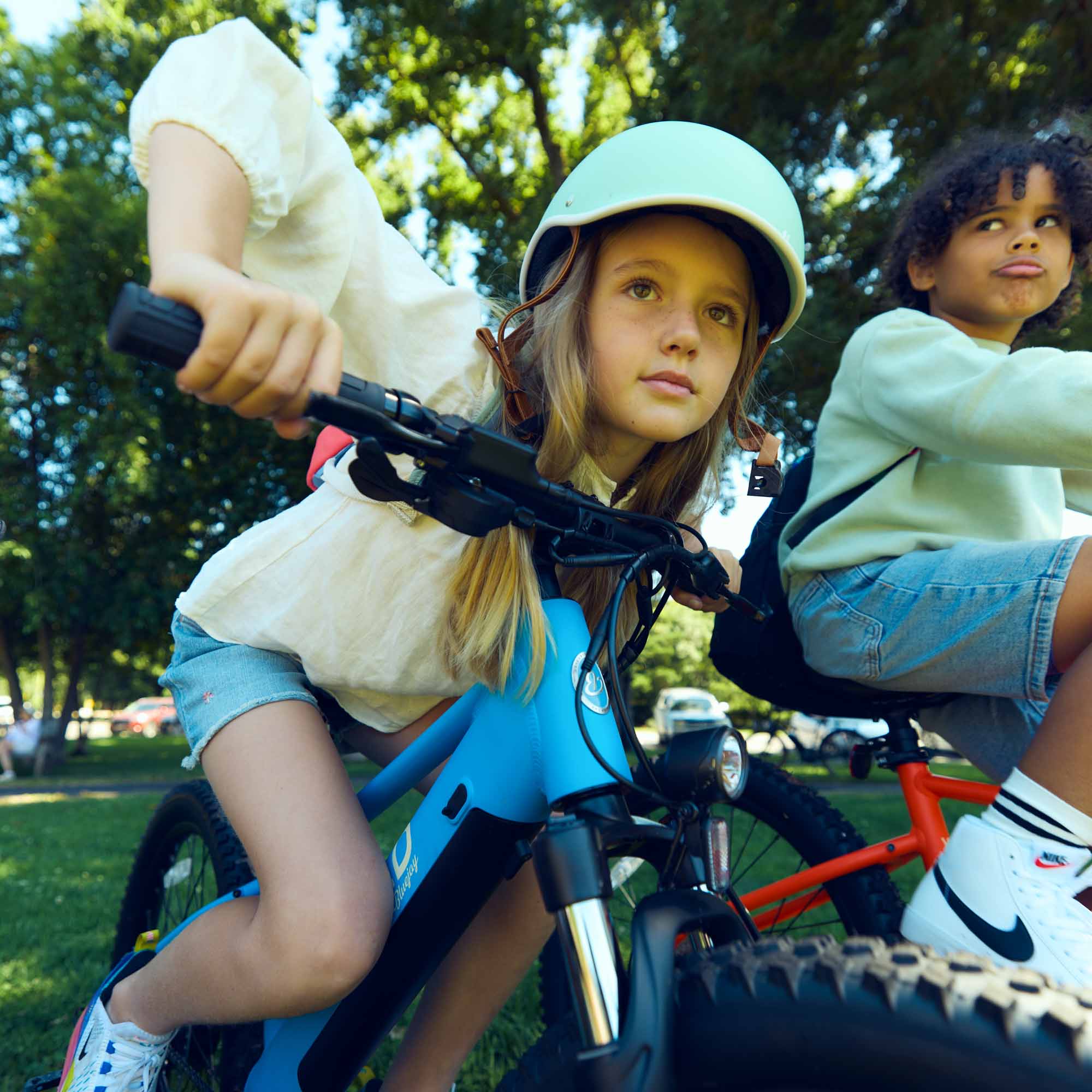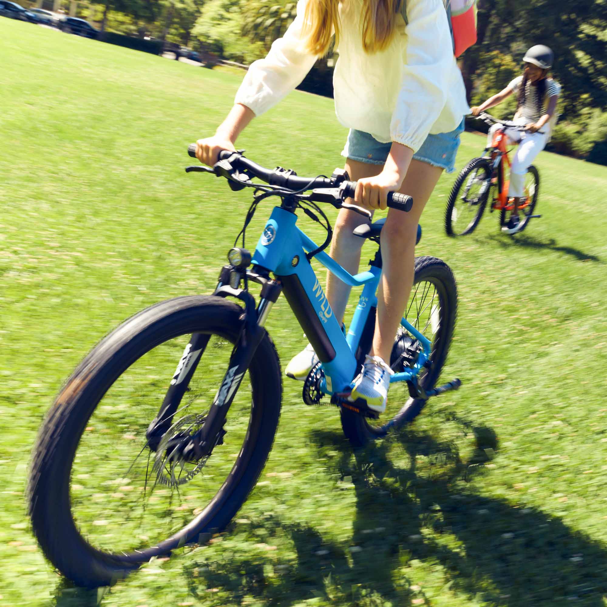 A: Built for kids ages 8 and up, the Bluejay WILD is a rugged, fun, and safe electric bike made for outdoor exploration on roads and trails.