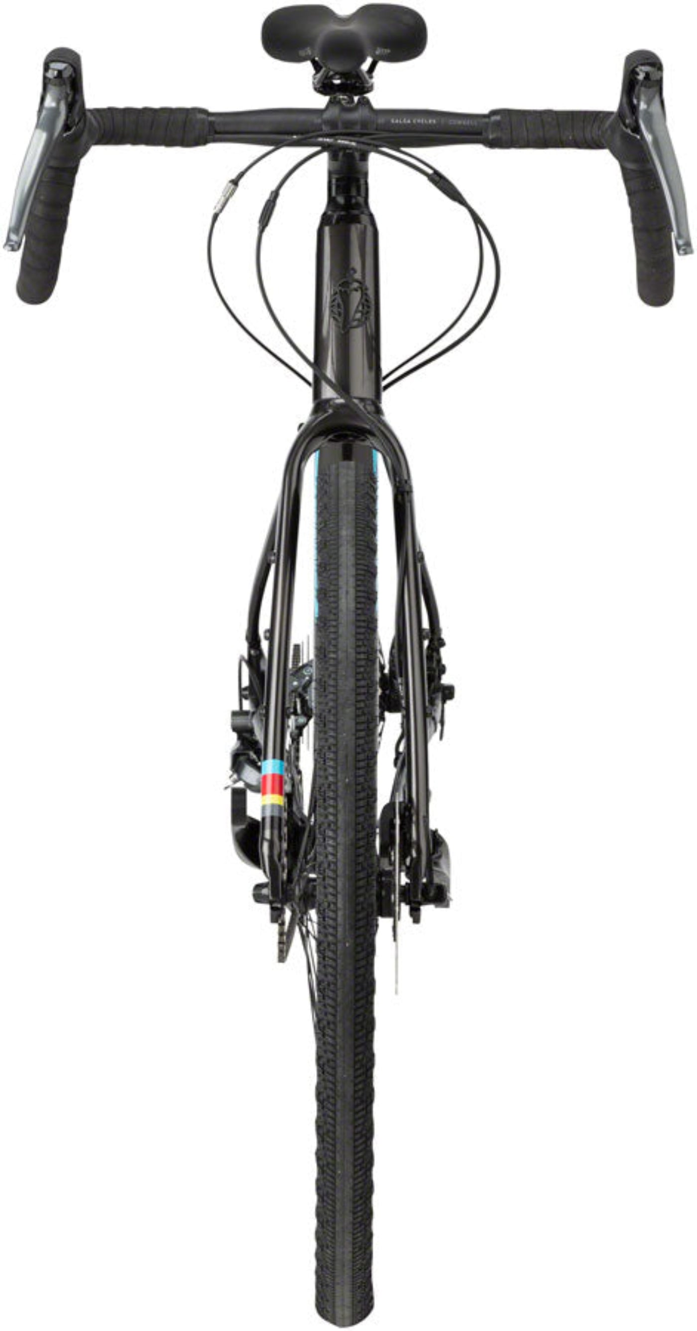 Cockpit: Salsa Cowbell 3 handlebars, Salsa Guide stem, and black cork grips for comfort and control on long rides.