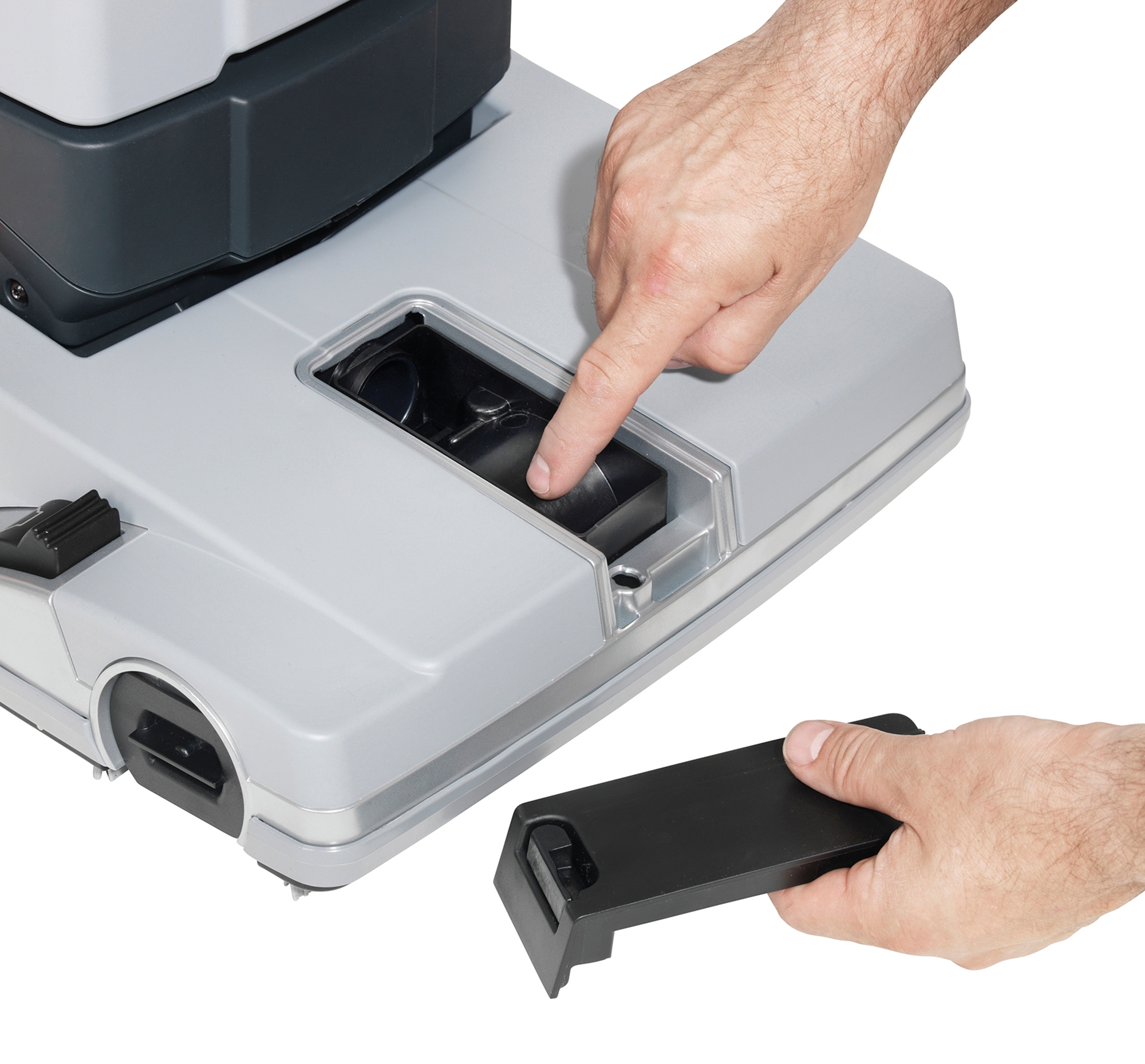 Two solution flow settings and a low solution indicator light ensure efficient cleaning Easy-to-handle recovery tank makes emptying dirty water easier Low deck profile gives the operator easy access to hard-to reach areas Flexible squeegees can be raised and lowered for double scrubbing Tanks, squeegees and brush lock into place with an audible “click” ensuring proper installation |