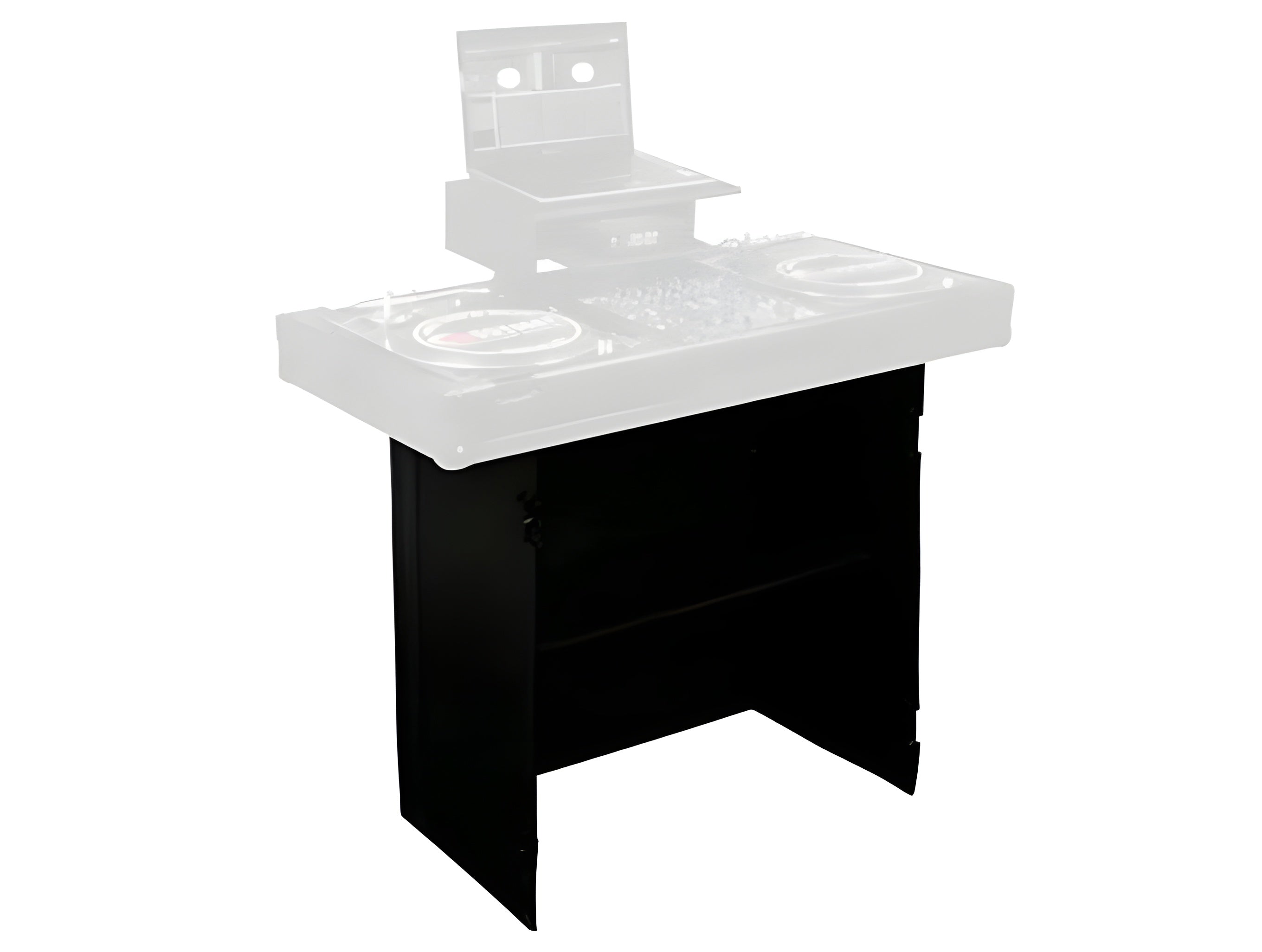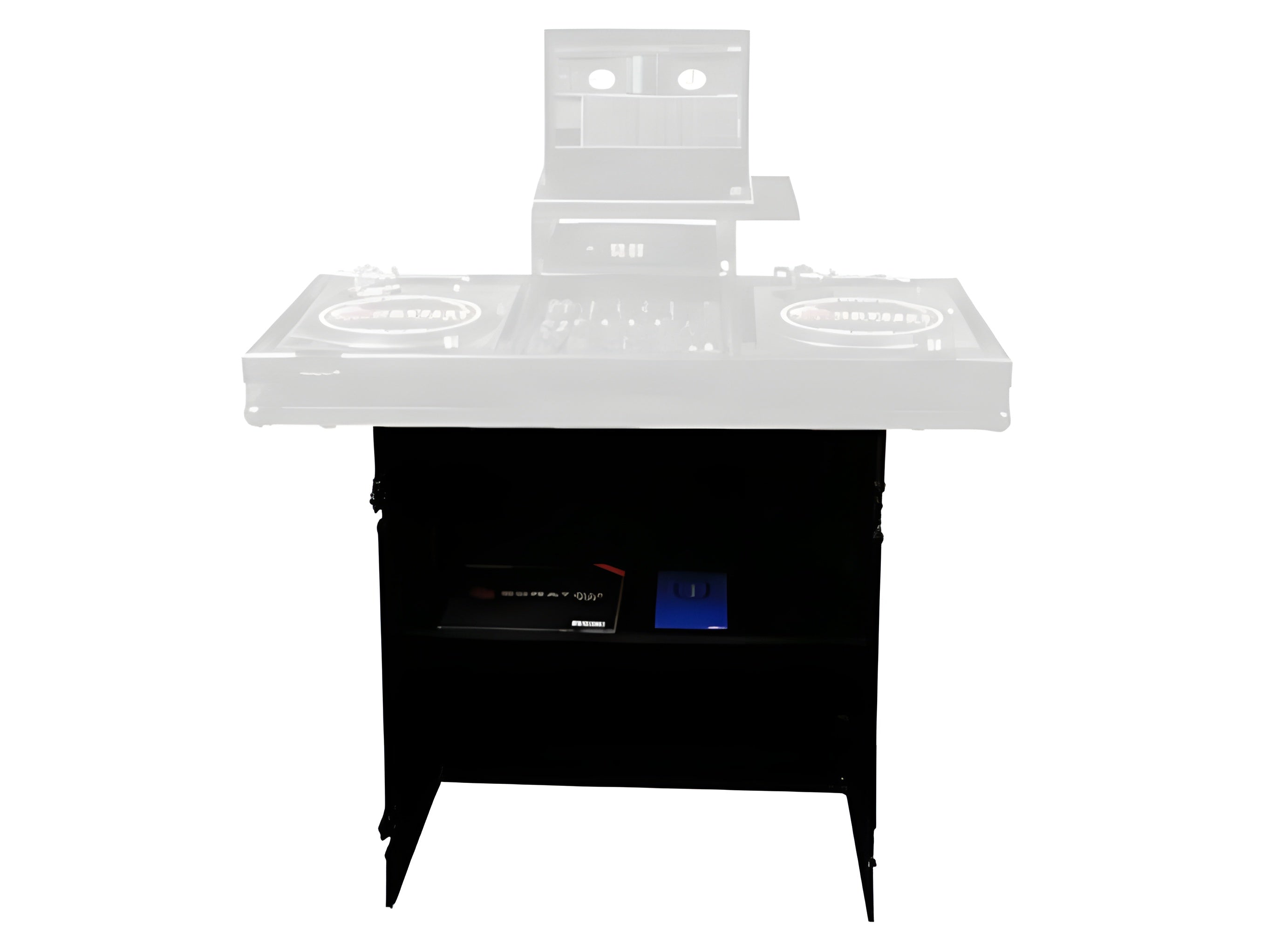 A: A sturdy foldout DJ stand designed to support DJ coffins, controllers, and mixers for professional setups.