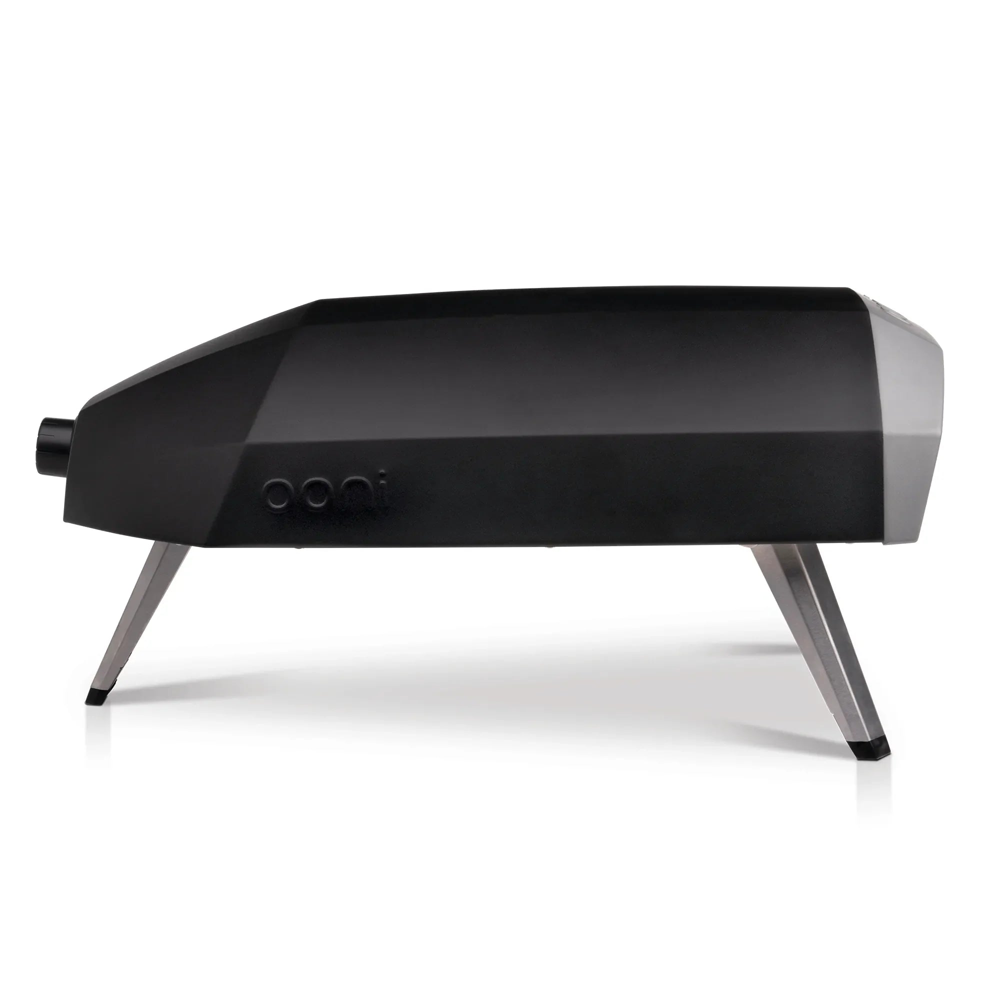 A: The Ooni Koda 12 runs entirely on gas, with a built-in burner that provides consistent and controlled heat for cooking pizzas quickly and evenly.