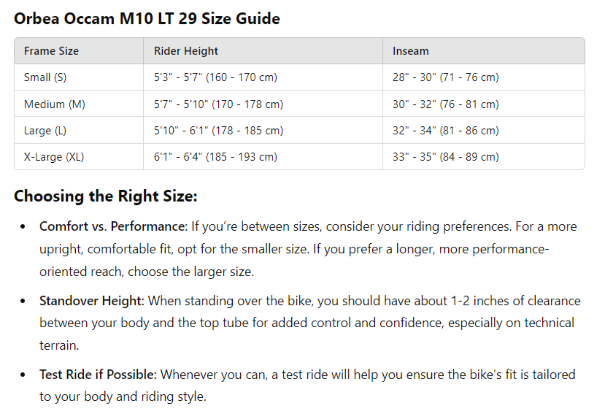 Q: What sizes are available for the Orbea Occam M10 LT?
