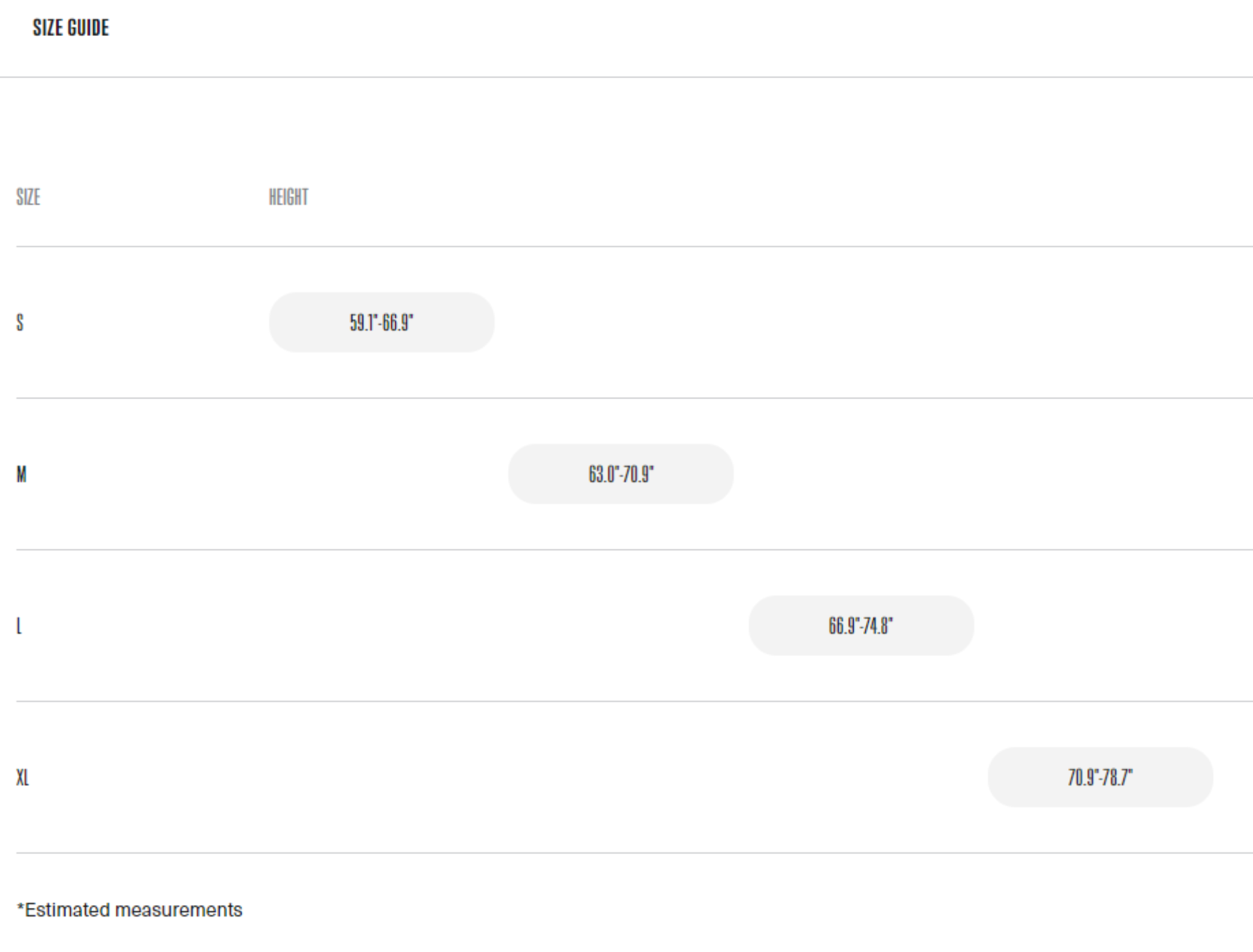 The bike is available in Small, Medium, Large, and Extra Large sizes to accommodate a range of rider heights.