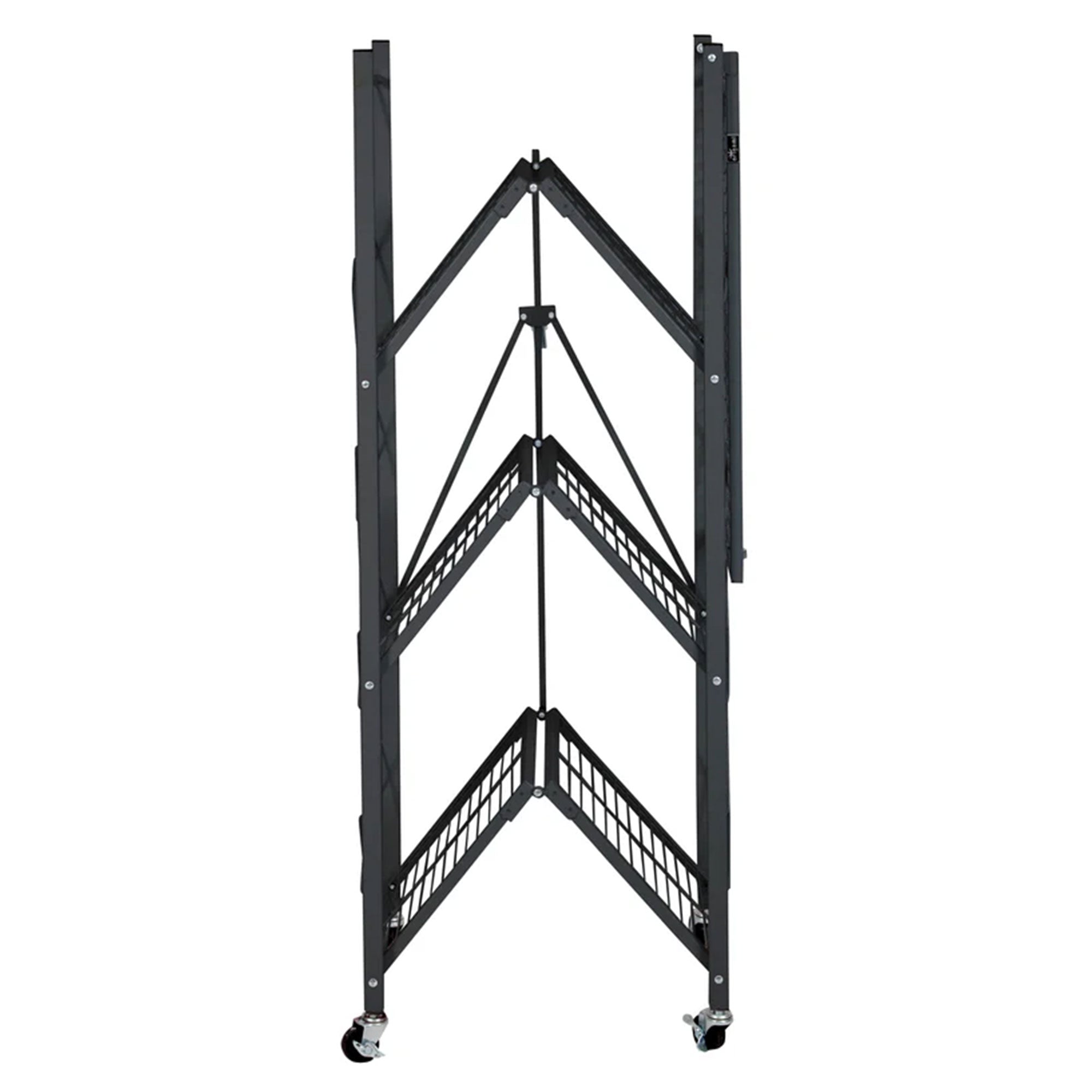 Instantly transform your cluttered garage or chaotic warehouse into a streamlined space of efficiency with the 4 pack of Origami 4-Tier Folding Shelf Garage Shelving.Say goodbye to the hassle of assembling shelves. These pre-assembled marvels unfold in just 5 seconds to reveal a sturdy wire steel shelving unit ready to tackle your organizational woes. Designed for convenience, this rolling shelf glides effortlessly wherever you need it, thanks to the built-in wheels. Crafted from commercial-grade powder-coated steel, these heavy-duty shelving units is built to withstand the rigors of any environment. Whether it's enduring the demands of a busy garage, a bustling warehouse, or even the elements in your garden, rest assured this shelf will hold up under pressure. Experience peace of mind knowing your belongings are securely housed on the steel hatches, providing stability even under heavy loads. With a remarkable 160-pound capacity, these shelves can effortlessly organize tools, equipment, and supplies, reducing clutter and saving you valuable time searching for misplaced items. For added versatility, choose to equip your shelves with the optional 4 wheels, increasing their portability for dynamic storage solutions. While the capacity is slightly lowered to 120 pounds with the wheels attached, the convenience they provide is priceless.Embrace the simplicity of organization and reclaim your time with the 4 pack of Origami 4-Tier Folding Shelf Garage Shelving. They're more than just a shelving unit; they're a game-changer for anyone seeking efficient storage solutions without the hassle.