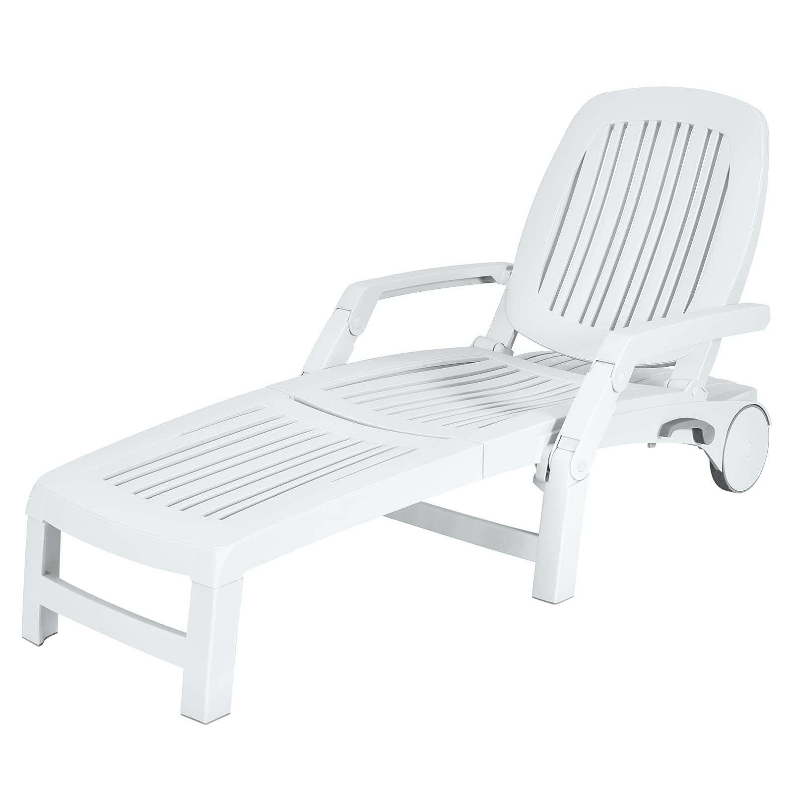 Makes your outdoor life more comfortable with this adjustable chaise lounge chair! There are 5 adjustable backrest positions to meet your different needs. Besides, the large storage box provides great convenience to put various belongings. Considering weather resistance, this high-quality recliner is made of durable PP material. And the sturdy feet and non-slip foot pads ensure strong stability to hold up to 330 lbs. Furthermore, the folding lounge chair with flexible wheels allows you to move and store more conveniently and effortlessly.