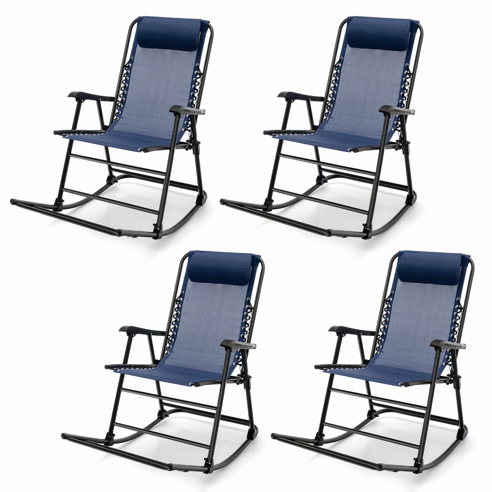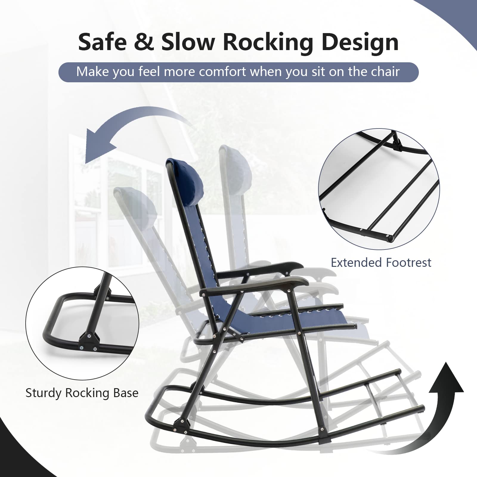 Tangkula Outdoor Folding Rocking Chair, No Assembly Required, Foldable Rocker Recliner with Headrest - OP3564BL
