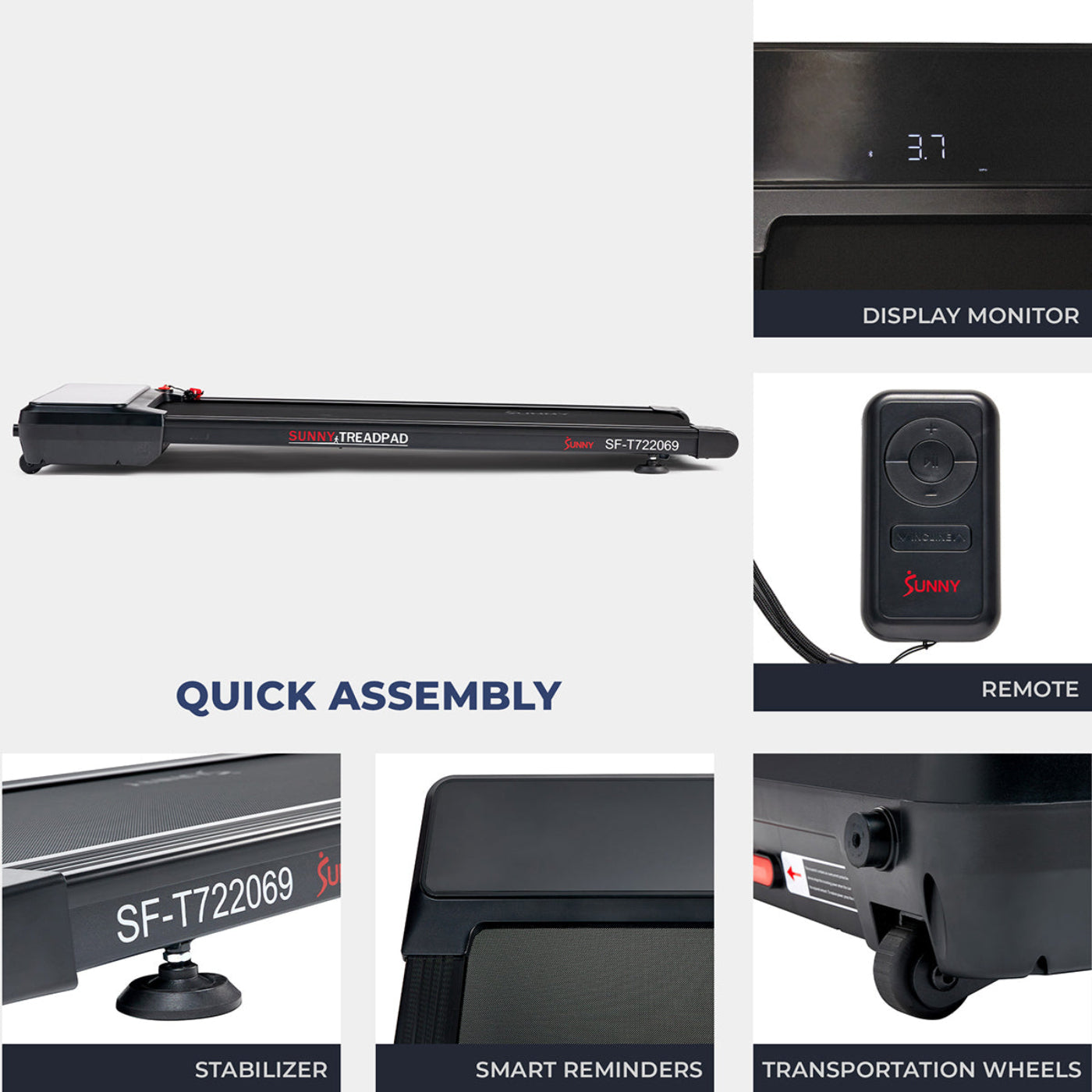 Sunny Health & Fitness Pacer Auto Incline Under Desk Walking Pad Smart Treadmill