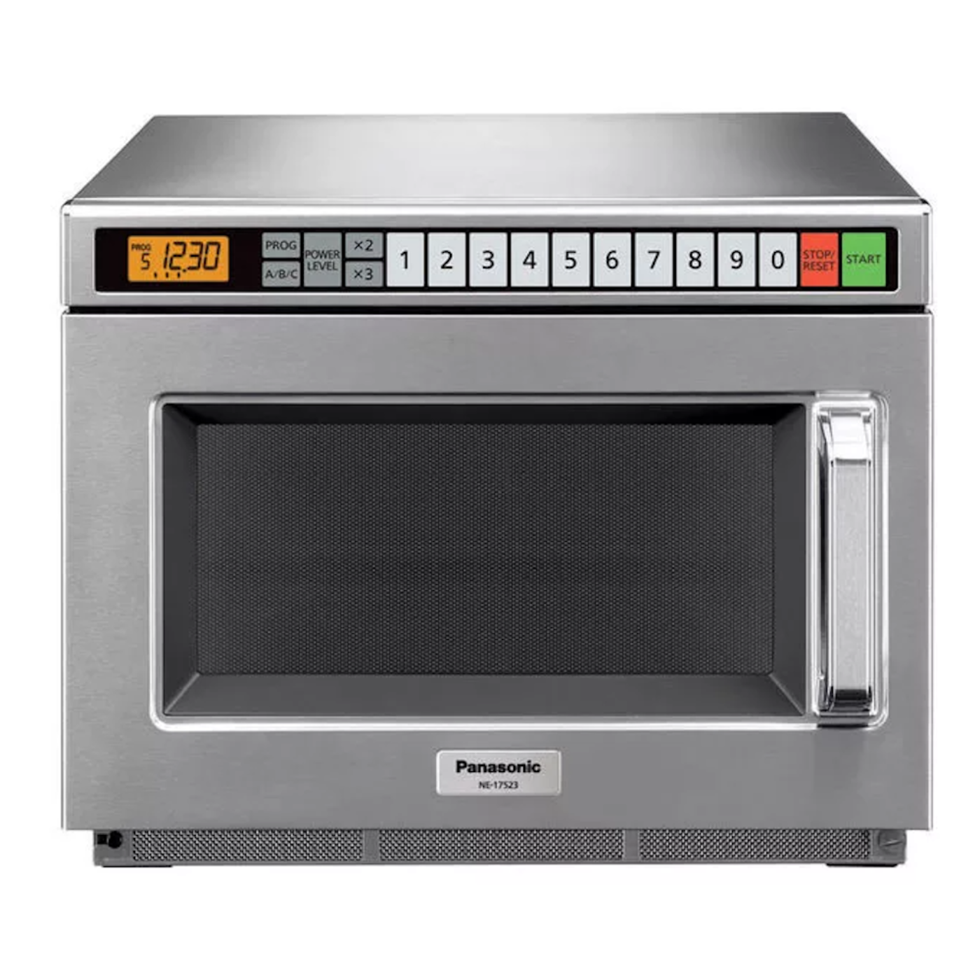 The Panasonic NE-17523 is a 1700-watt commercial microwave oven. This commercial microwave oven meets or exceeds all safety performance and sanitation standards set for commercial food service microwave ovens by:UL, HS, FCC, and NSF.