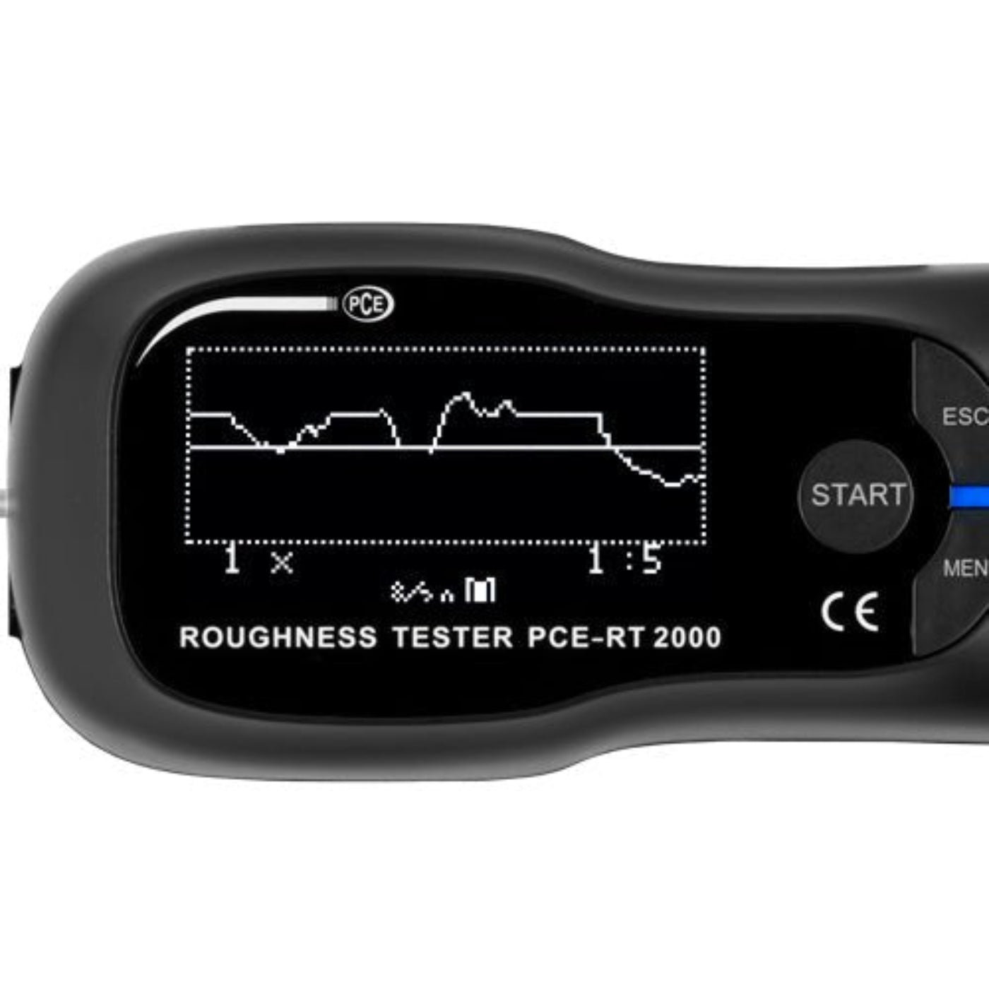 The PCE RT 2000BT 9-Parameter Bluetooth Profilometer Surface Roughness Tester allows for quick and precise measurement of surface roughness across a variety of materials. Simply place the roughness meter on the surface to be tested, and use the positioning device to align it accurately. With just the press of a button, you can initiate the measurement. Once completed, the measured value is displayed on the screen, along with a progress diagram of the surface.