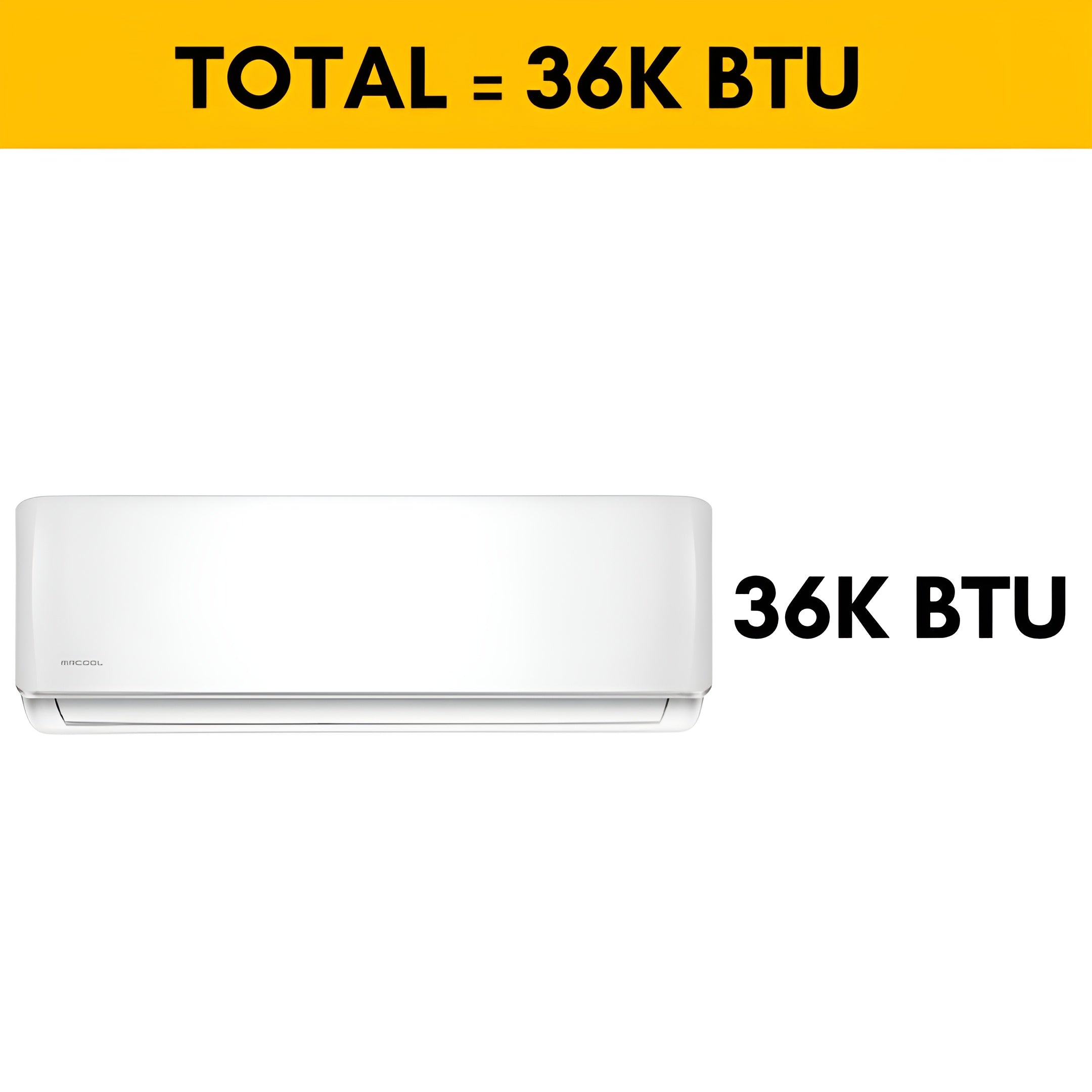 A: This system provides 36,000 BTU of cooling power, ideal for medium to large residential or commercial spaces.