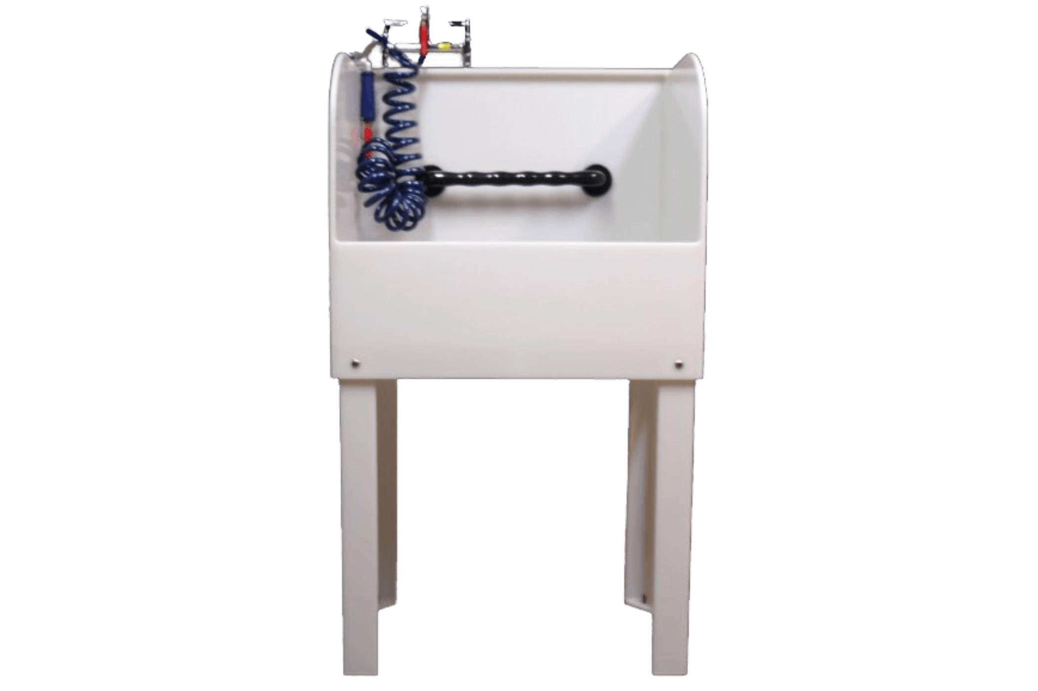 Poly Tubs are an innovative, attractive and practical alternative to traditional stainless steel pet tubs. They are constructed of 1/2" thick durable, high-density polyethylene (the same material used to build 10,000 gal fire truck tanks). They are easier to clean, quieter to use, drain faster and are more durable than a standard tub. Poly Tubs are FDA and USDA approved, Made in the USA and come with an industry-leading