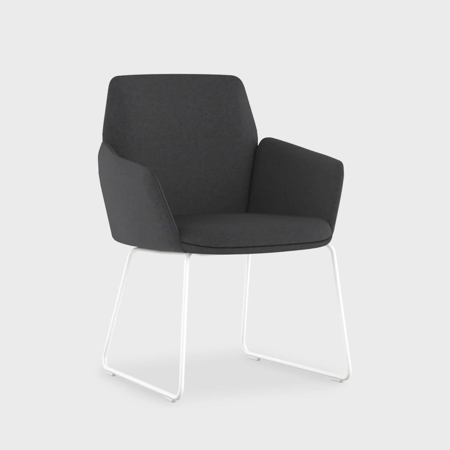 A: The Poppy Guest Chair includes a comfortable padded seat and backrest, along with a durable sled base that provides both stability and a contemporary style. Its clean lines make it a great addition to any office or lounge setting.