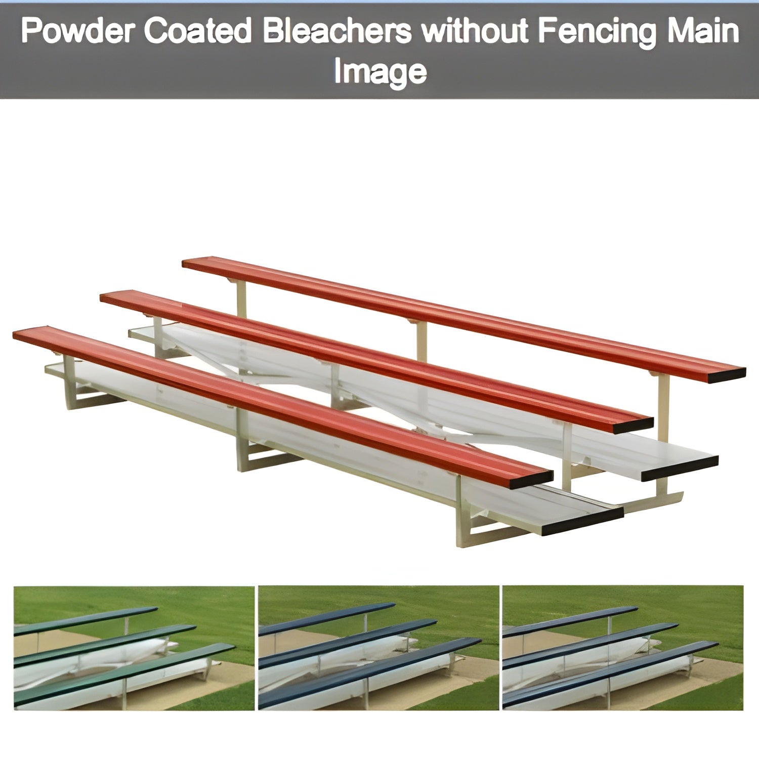 A: The powder coating adds durability, resists rust and corrosion, and enhances the bleachers' visual appeal with a sleek, professional look.
