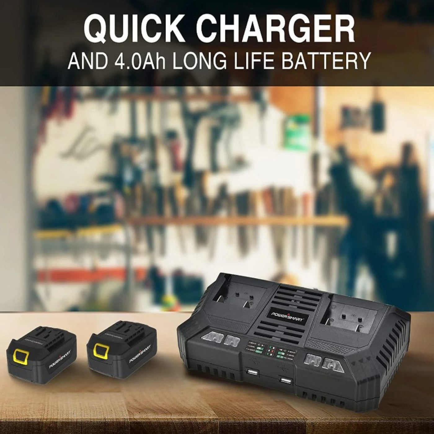 A: Yes, the Powersmart PS76221A includes both (2) 4.0Ah batteries and a charger, so you can charge the batteries and get started right away.