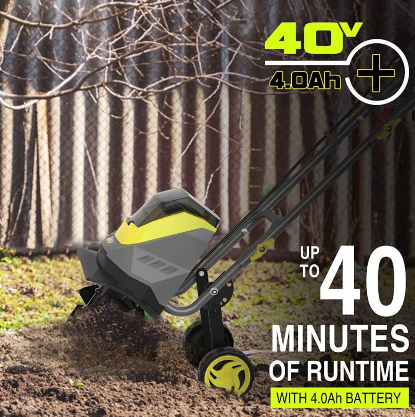 A: The battery life varies based on soil conditions and usage, but you can expect around 40-60 minutes of operation with a full charge, depending on the tilling depth and soil type.