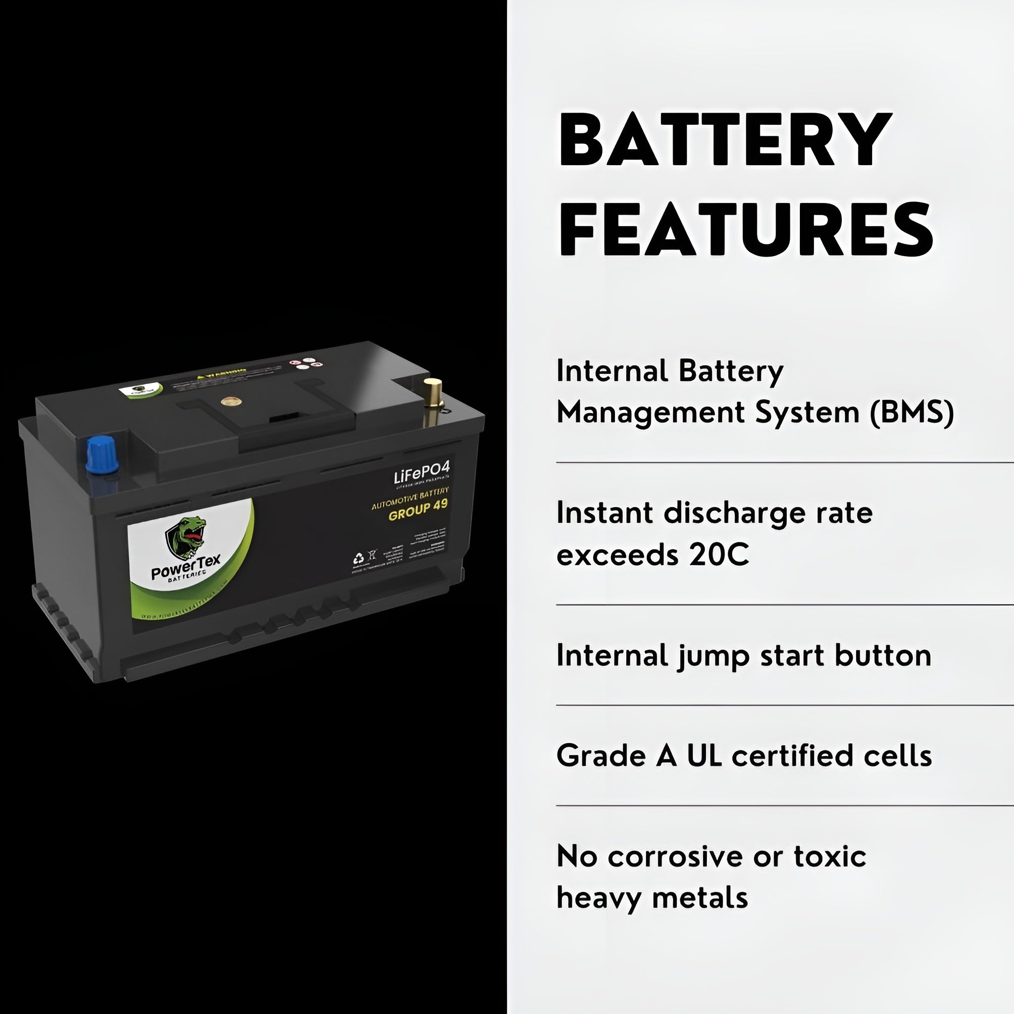 PowerTex 2023 Ram Promaster 1500 V6 3.6LReplacement Car Battery BCI Group 49 Lithium LiFePO4 Automotive Powertex Battery - PTLG49