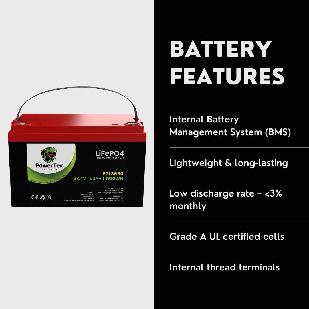 Q: What is the PowerTex PTL3650 36V 50Ah LiFePO4 Battery?