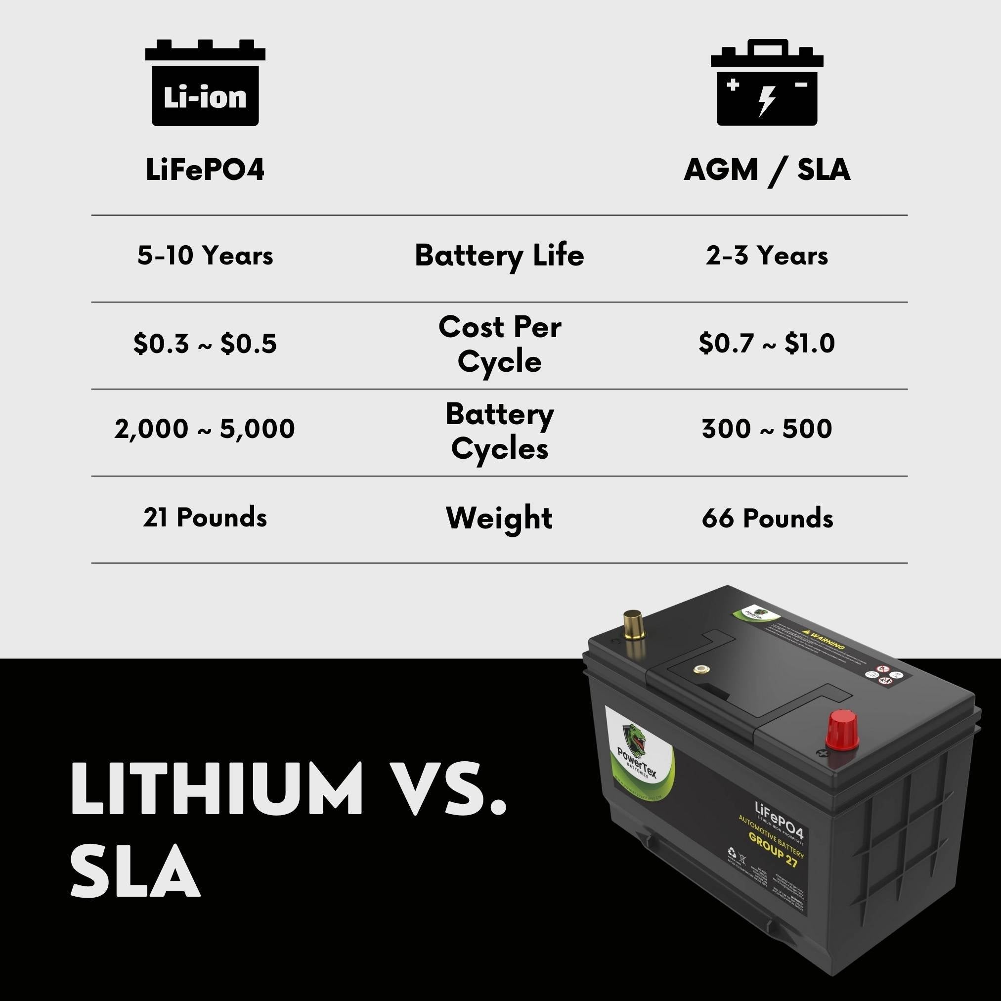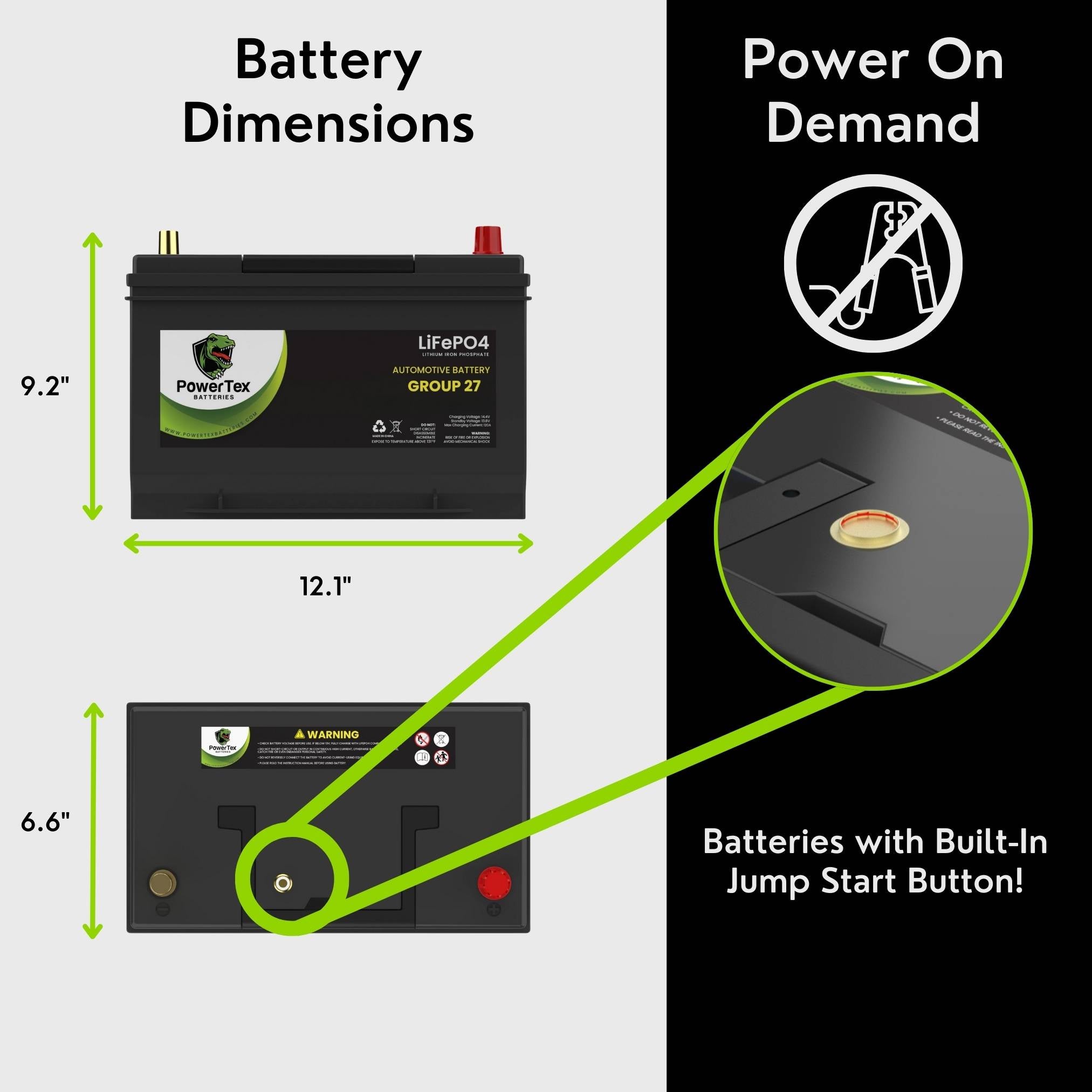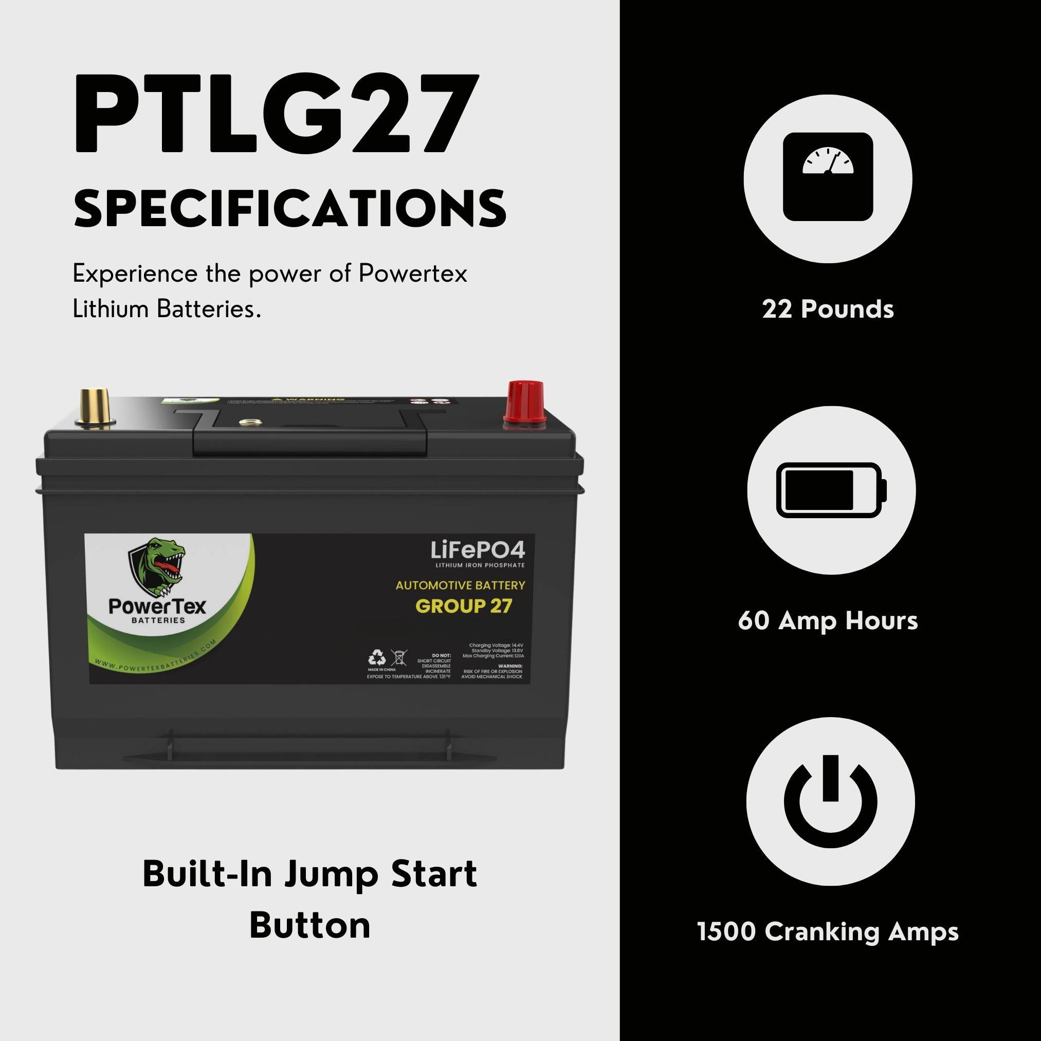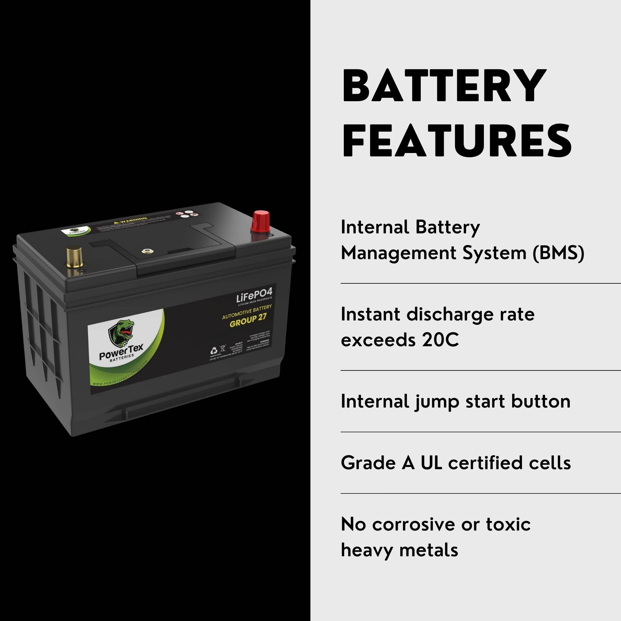 Introducing PowerTex LiFePO4 BCI Group 27 / 27M Battery – The Ultimate Power Solution for Automotive & Marine Applications!