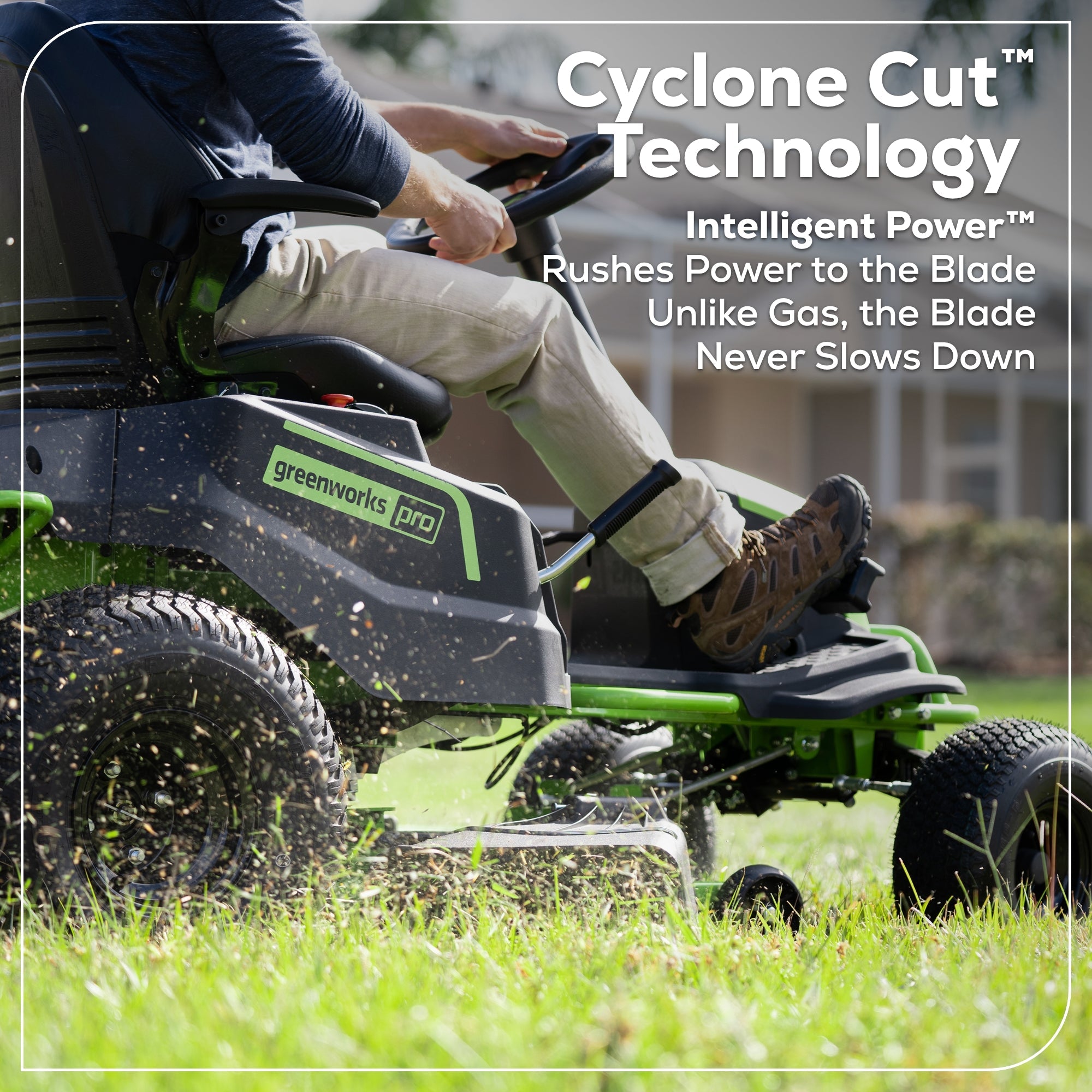 With cutting speeds up to 6 MPH and an astonishing 23% more power than gas mowers, it's time to revolutionize the way you conquer your lawn. Unleash absolute power and performance as you effortlessly mow up to 2.5 acres on a single charge. It's time to elevate your yard game and enjoy easy, powerful, and sustainable mowing from Greenworks.