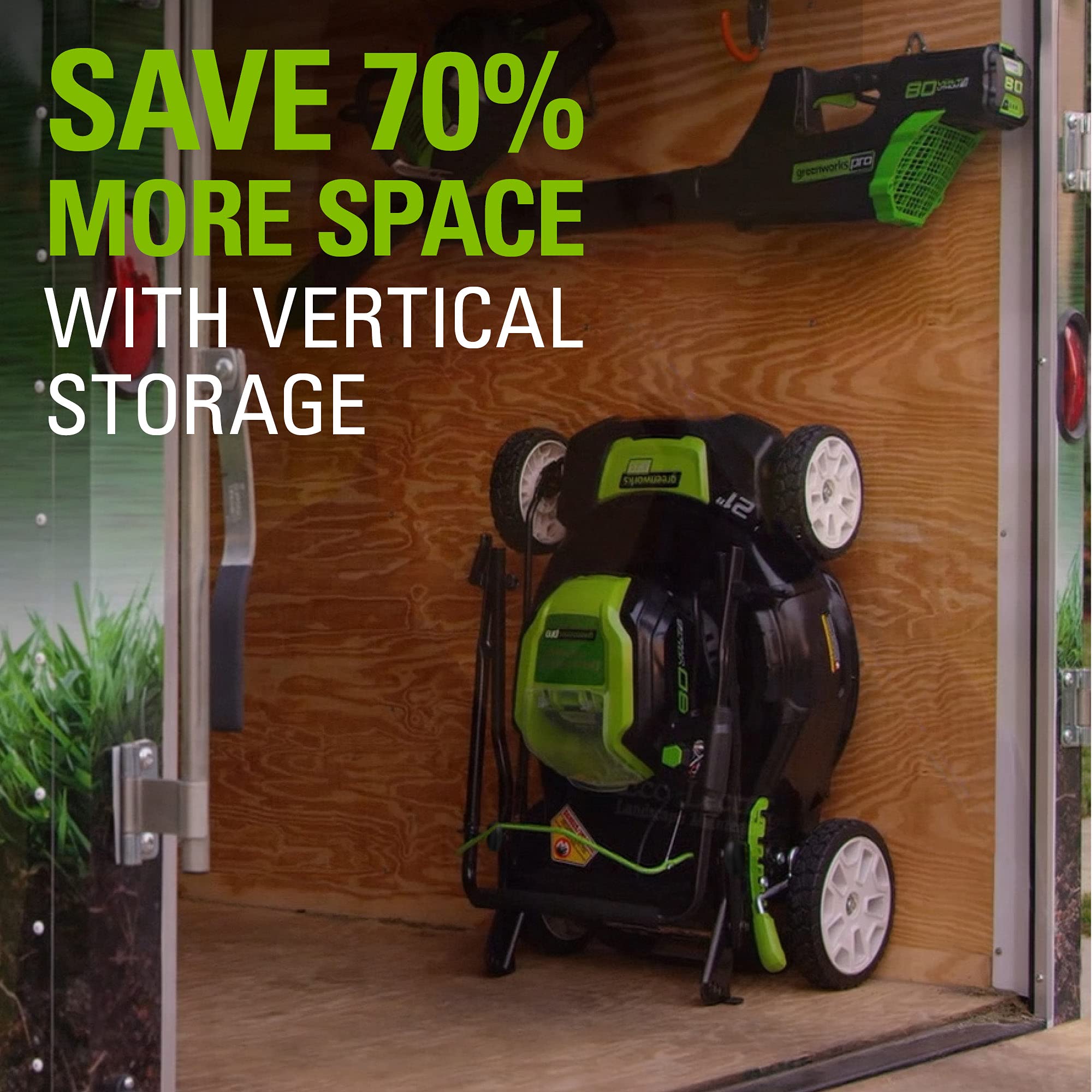 Q: How easy is it to use and store the Greenworks Pro mower?