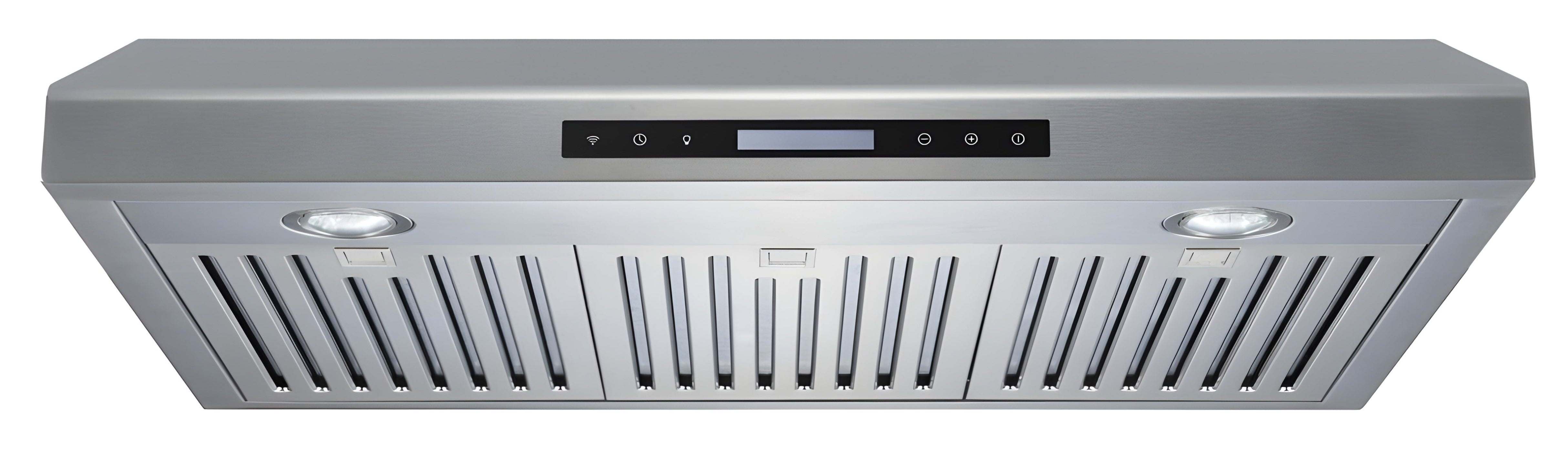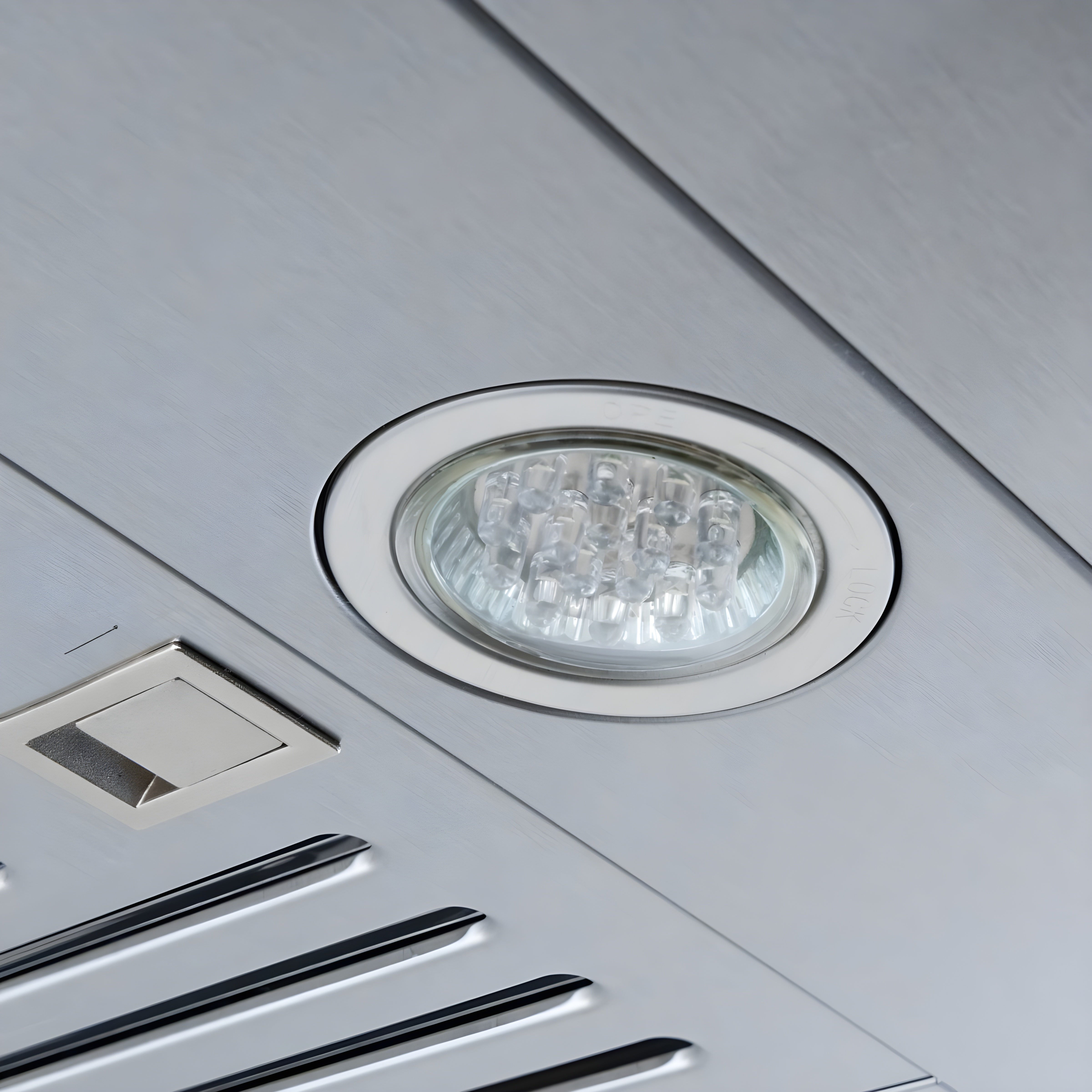 A: This range hood is finished in durable stainless steel, ensuring both elegance and longevity.