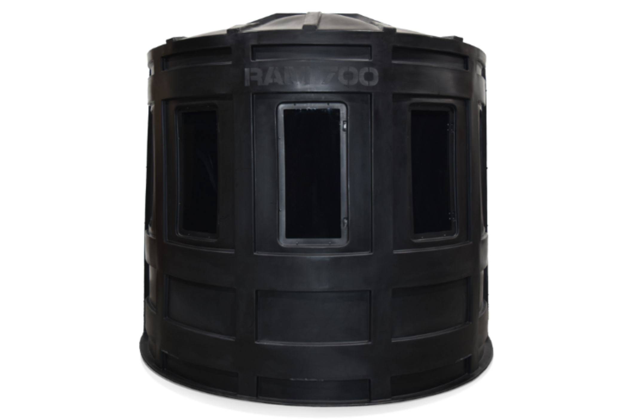 The RAM 700 Hunting Blind ensures comfort, concealment, and scent control. With nine large, clear or tinted, side-opening windows (24x10 inches each) arranged for a full 360-degree view, it offers the ultimate advantage for hunters. Its 7-foot diameter and 76-inch interior height provide plenty of space for most bow hunters, and it's roomy enough to accommodate 2-3 people along with their gear. The two-piece design makes it easy to transport in a truck, maneuver through the woods, and set up quickly.