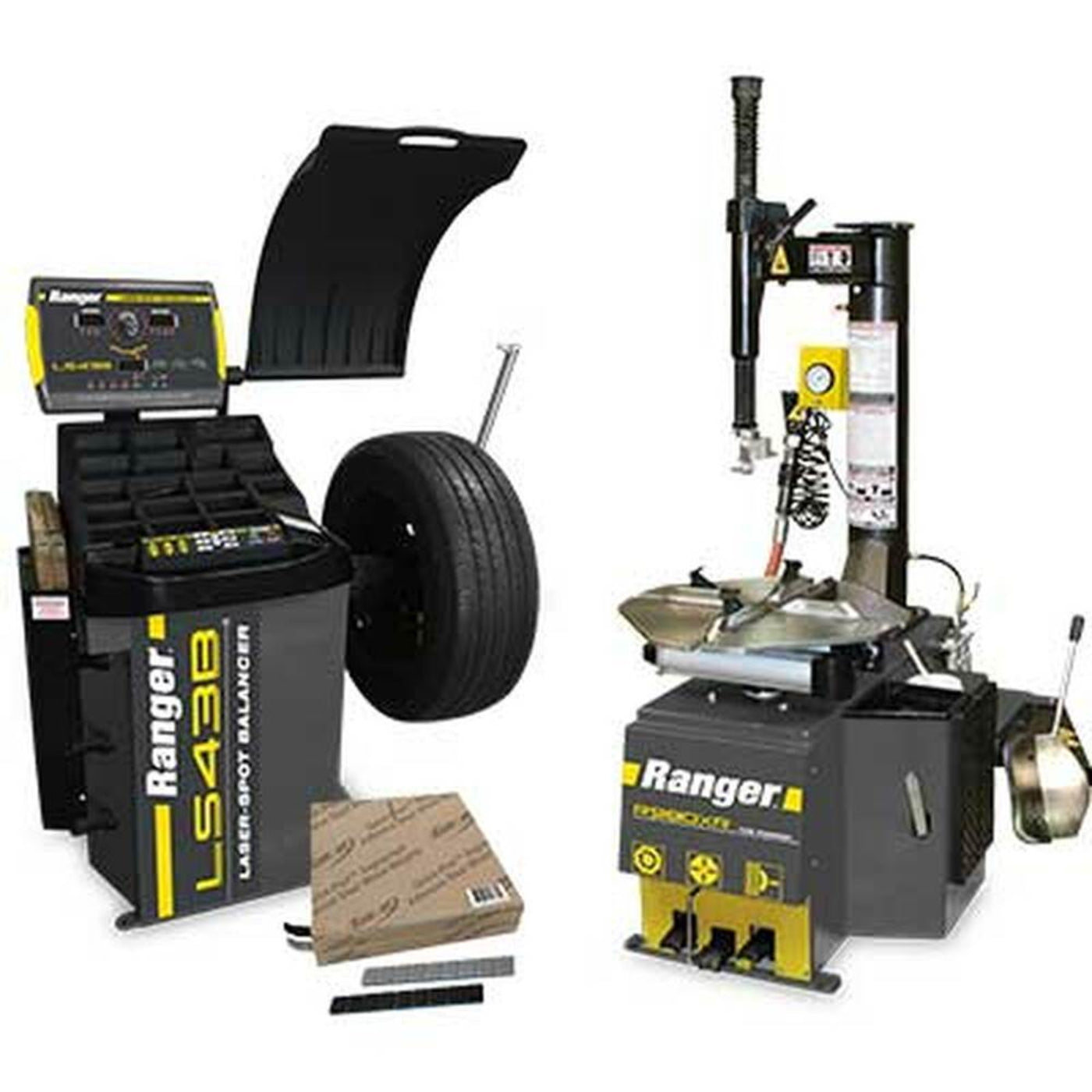 Comprehensive Service Package: The Ranger R980XR Tire Changer, LS43B Wheel Balancer, and Tape Weight Rolls (1400 pcs) offer a complete solution for efficient tire servicing.