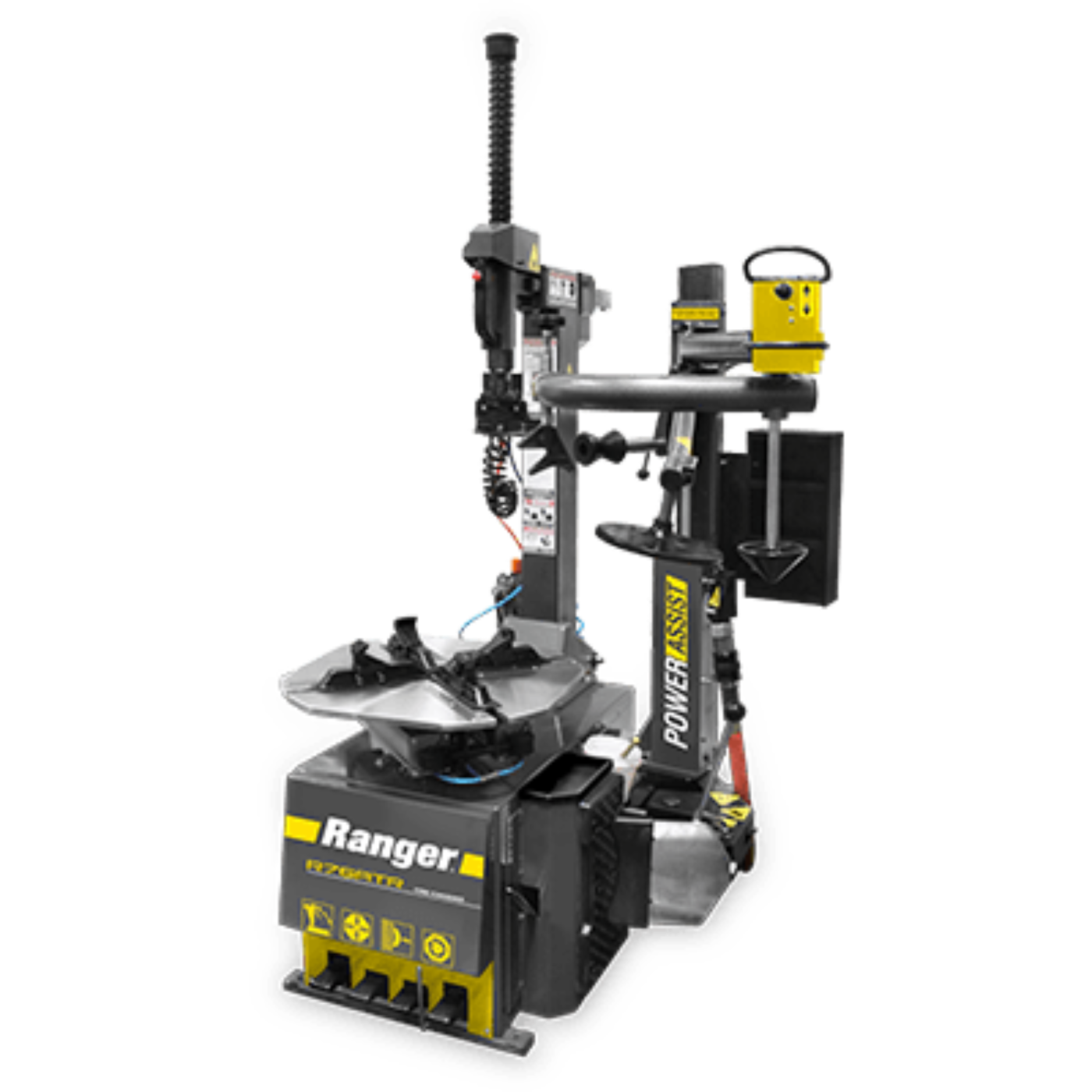 When it comes to your tire repair business, Ranger's R76ATR has everything you need for safer, faster tire changes, even when working with tricky aluminum wheels. Extraordinarily easy-to-use, adjustable RimGuard™ clamps extend as far as 10" – 30", and the tilt-back tower saves significant time when loading a new set of wheels—no more adjusting the duck head to match each wheel's diameter. The assist tower helps change low-profile and run-flats (anything with a stiff sidewall), and it holds the bead in the drop-center, protecting the tire. A centering cone further assists with external clamping, and a specialized saucer/roller combo offers yet another line of defense against stubborn beads.